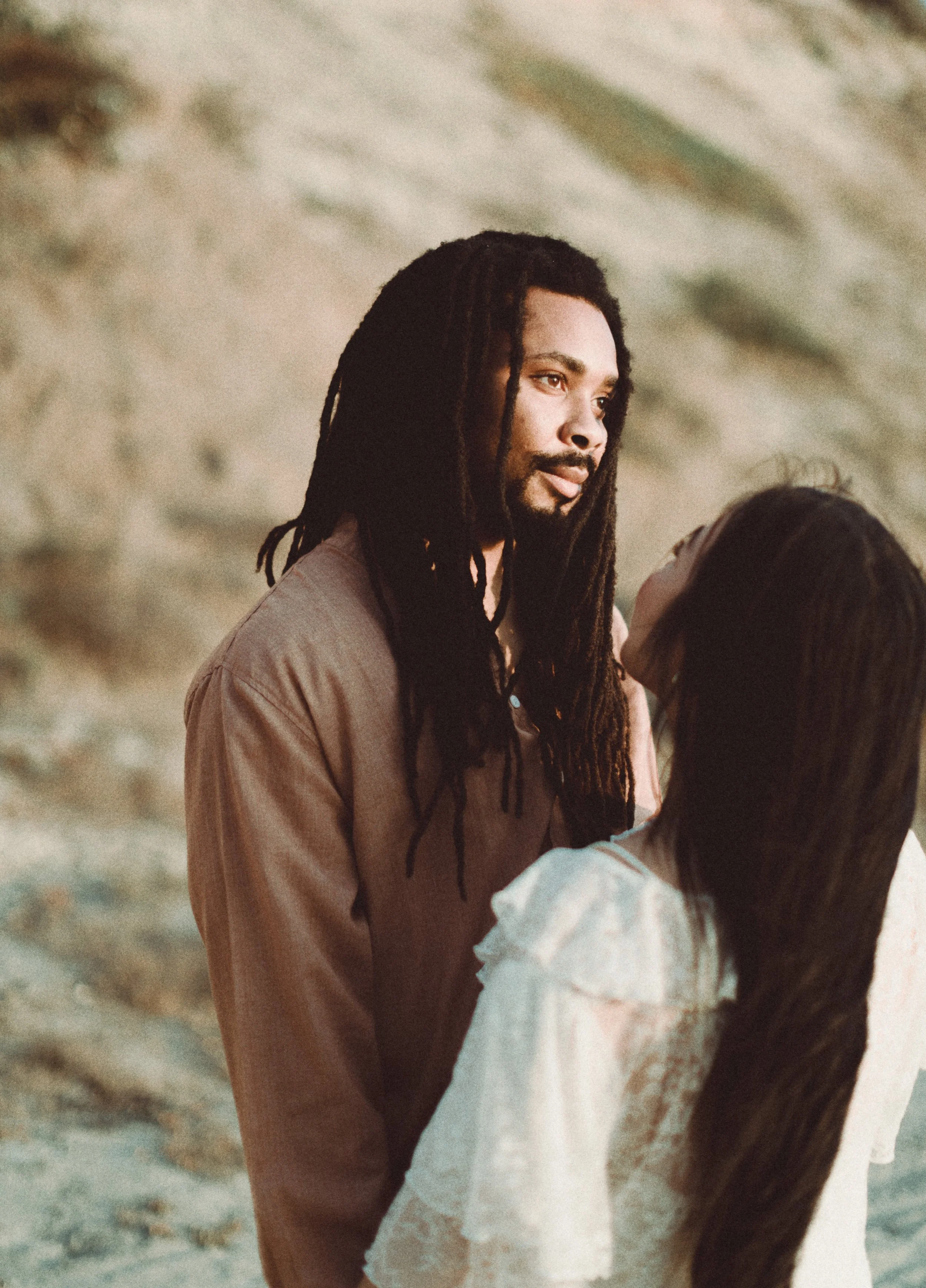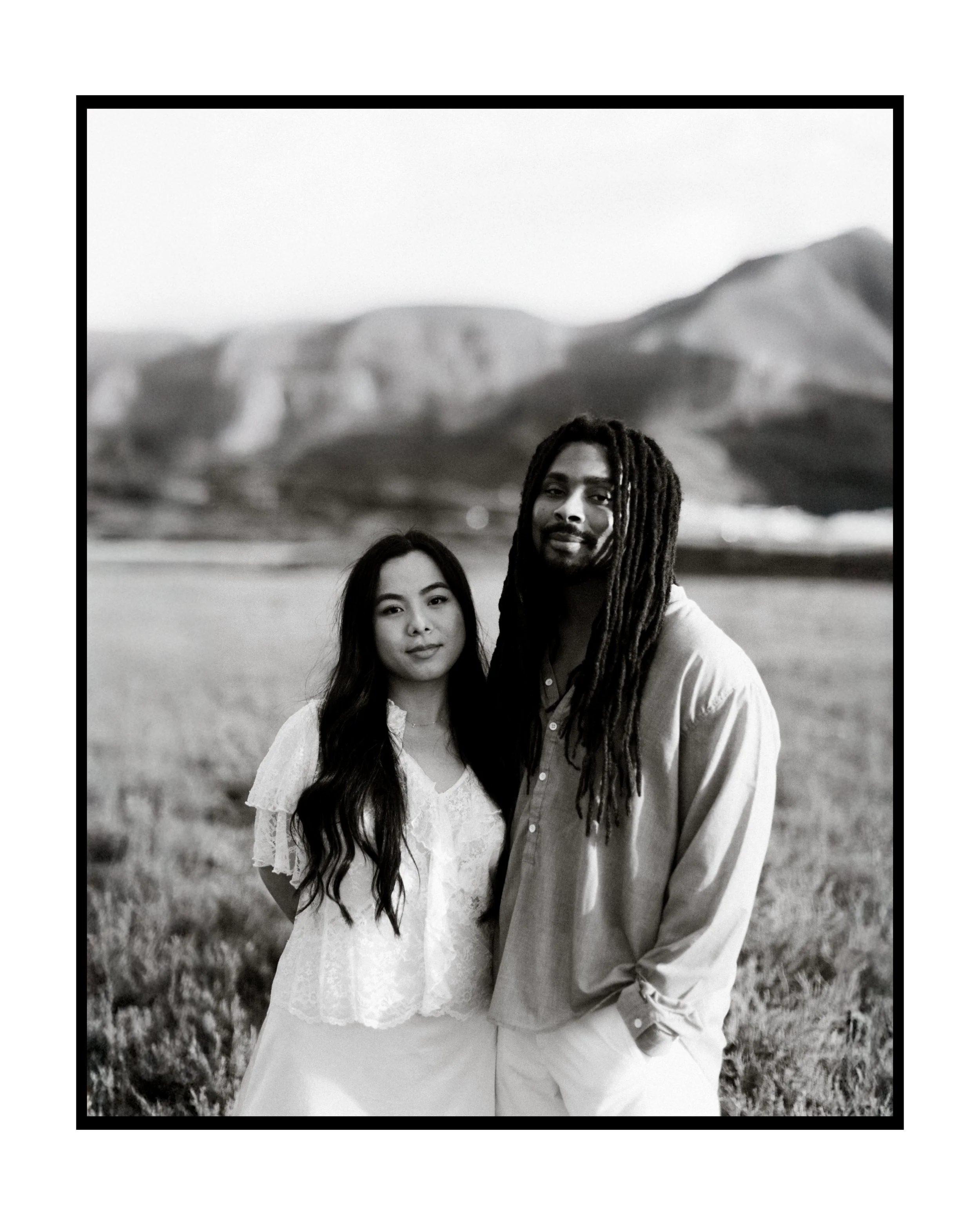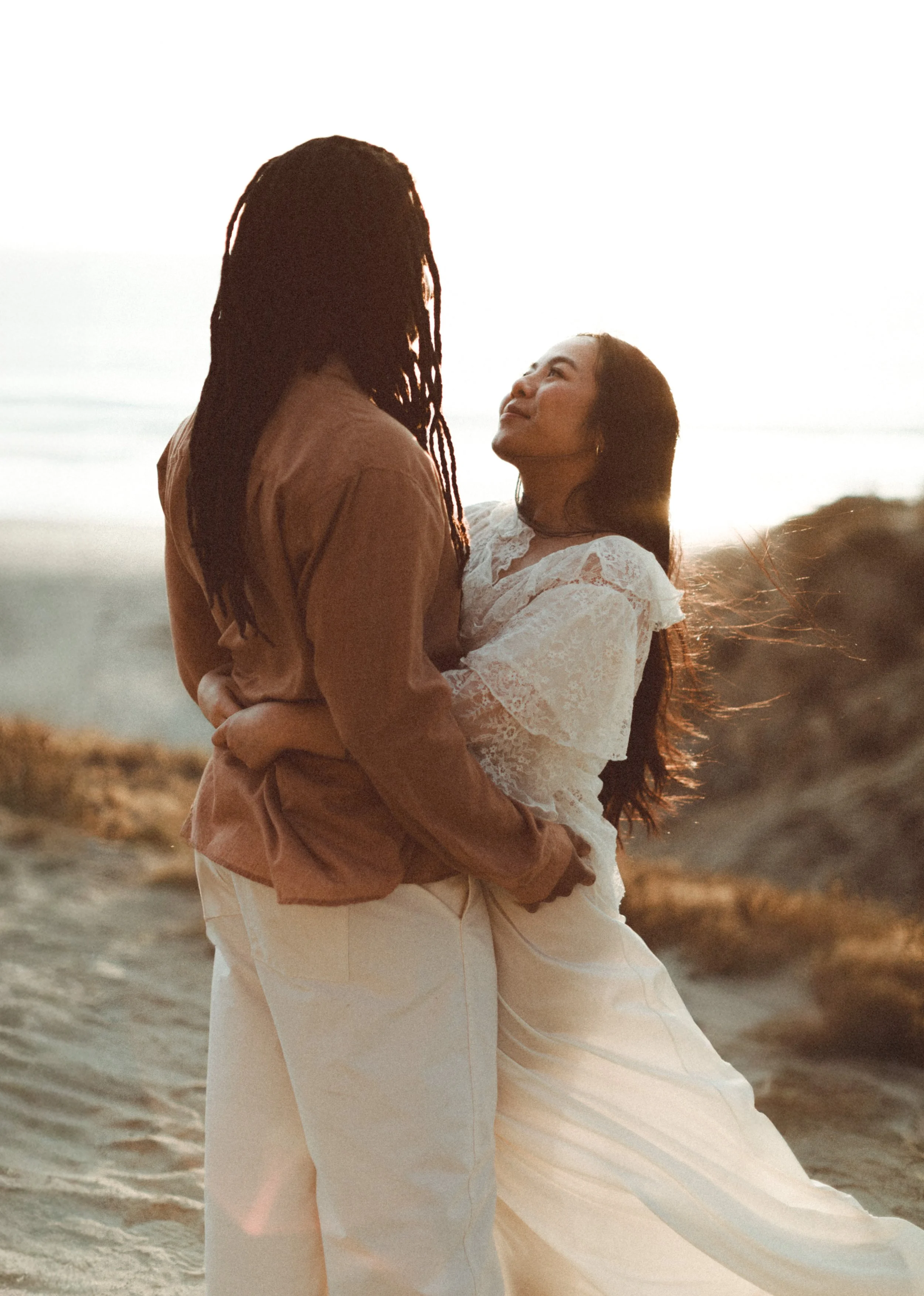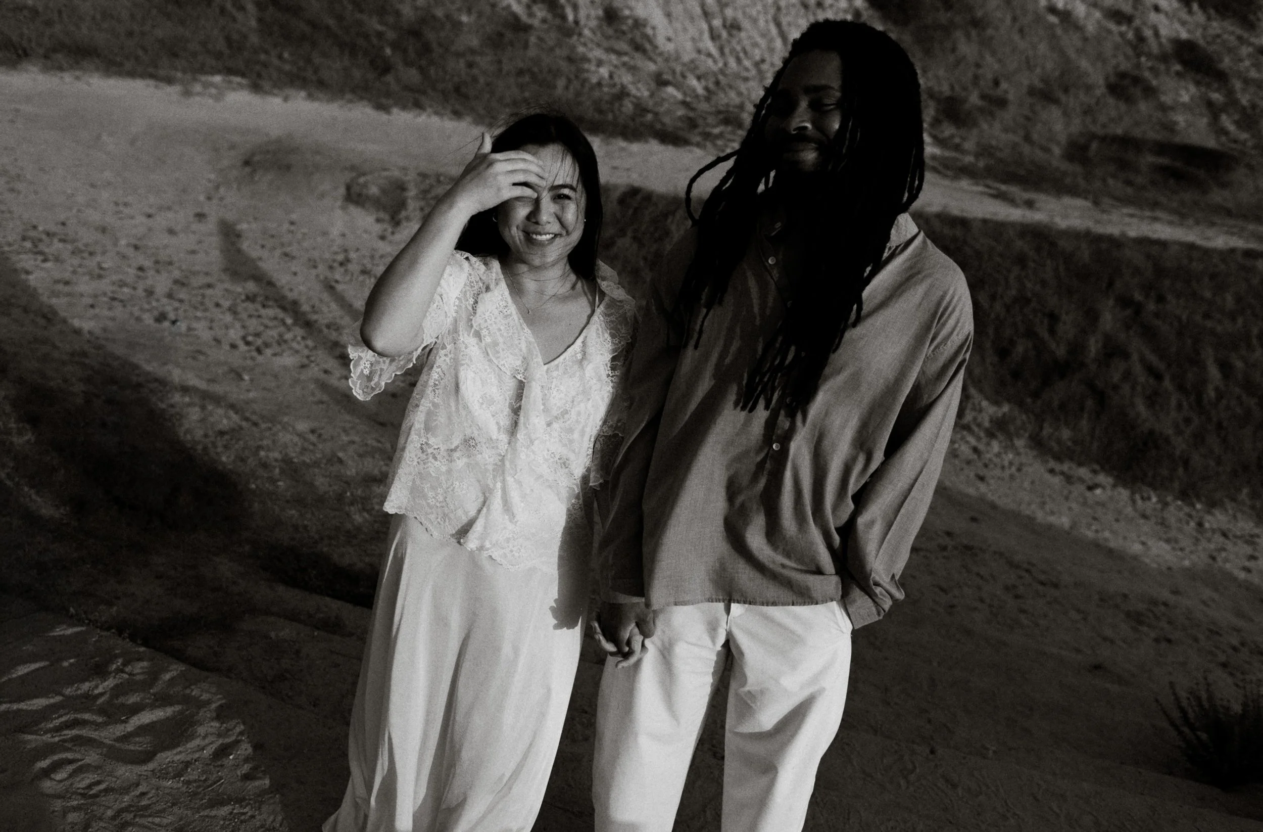 I’ve known Ila since middle school, and meeting Jamal for the first time felt like picking up where life left off. Between shared stories, laughter, and a little therapy in the sand, we created images that blended editorial elegance with raw documentary honesty.