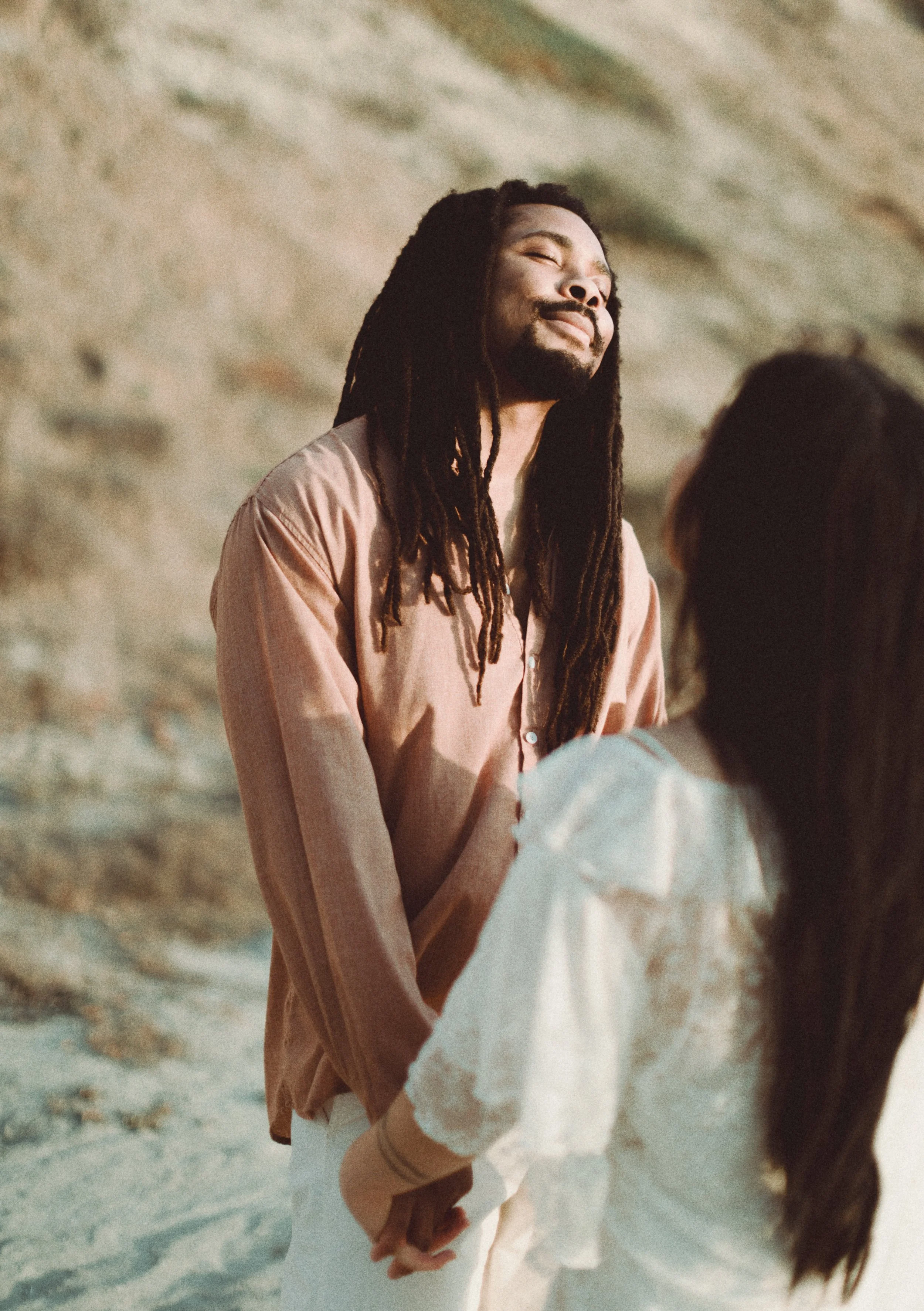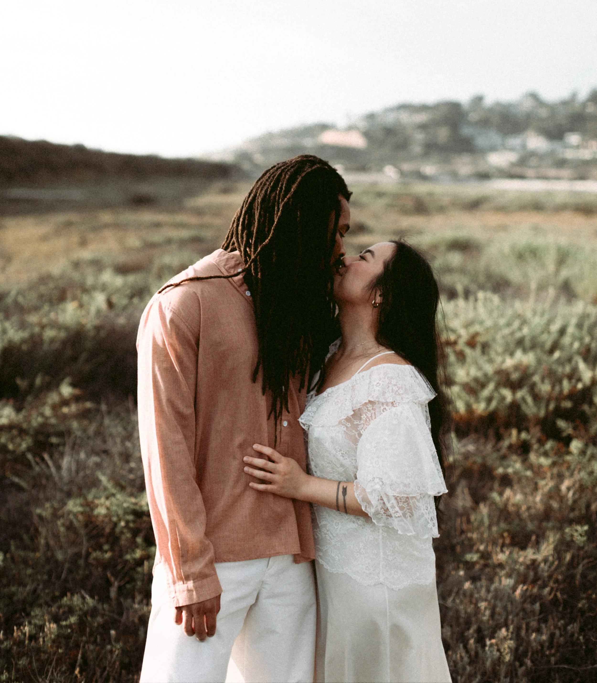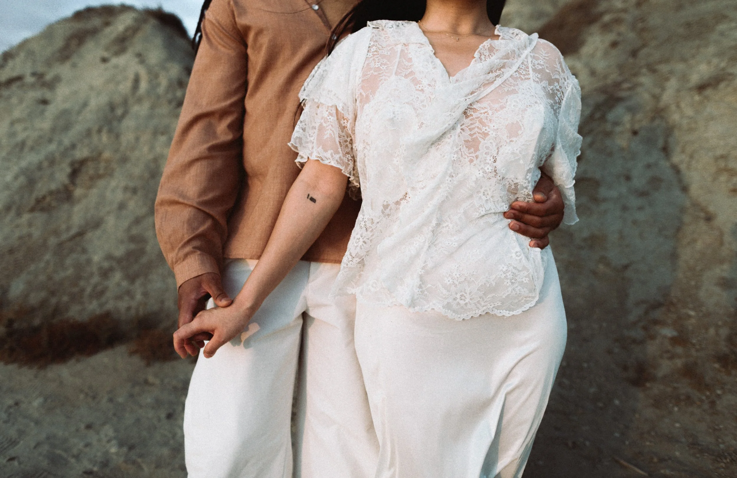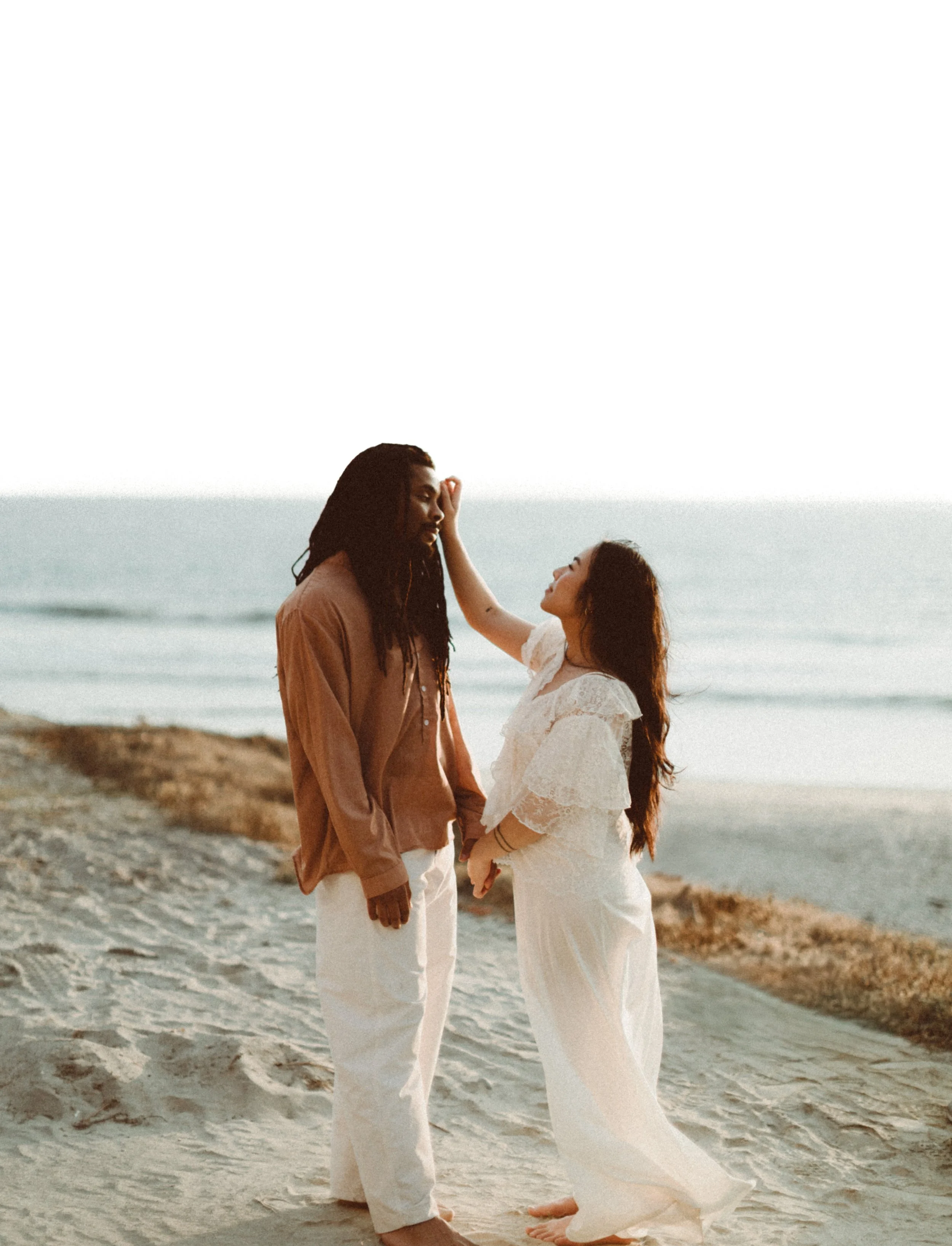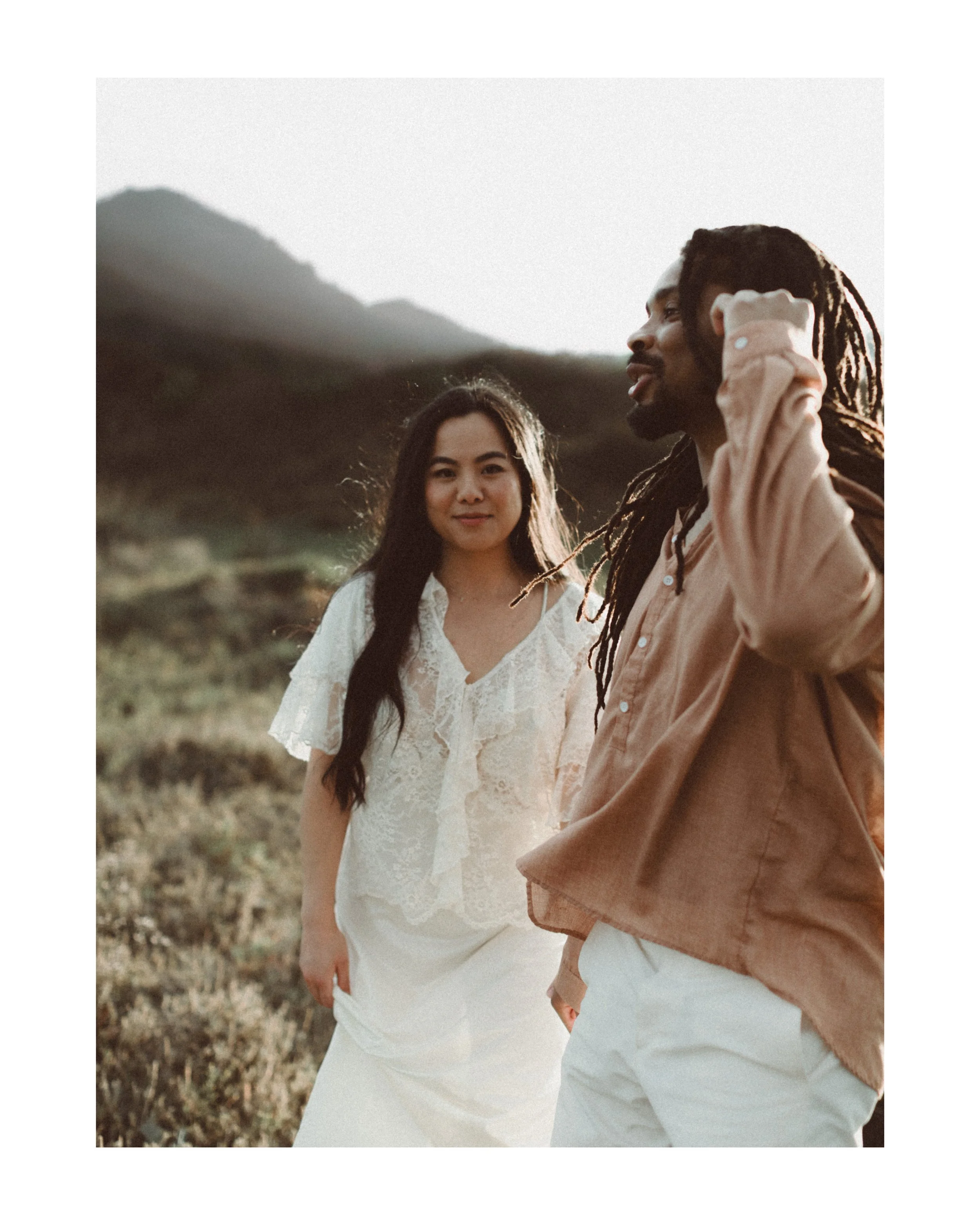 I’ve known Ila since middle school, and meeting Jamal for the first time felt like picking up where life left off. Between shared stories, laughter, and a little therapy in the sand, we created images that blended editorial elegance with raw documentary honesty.