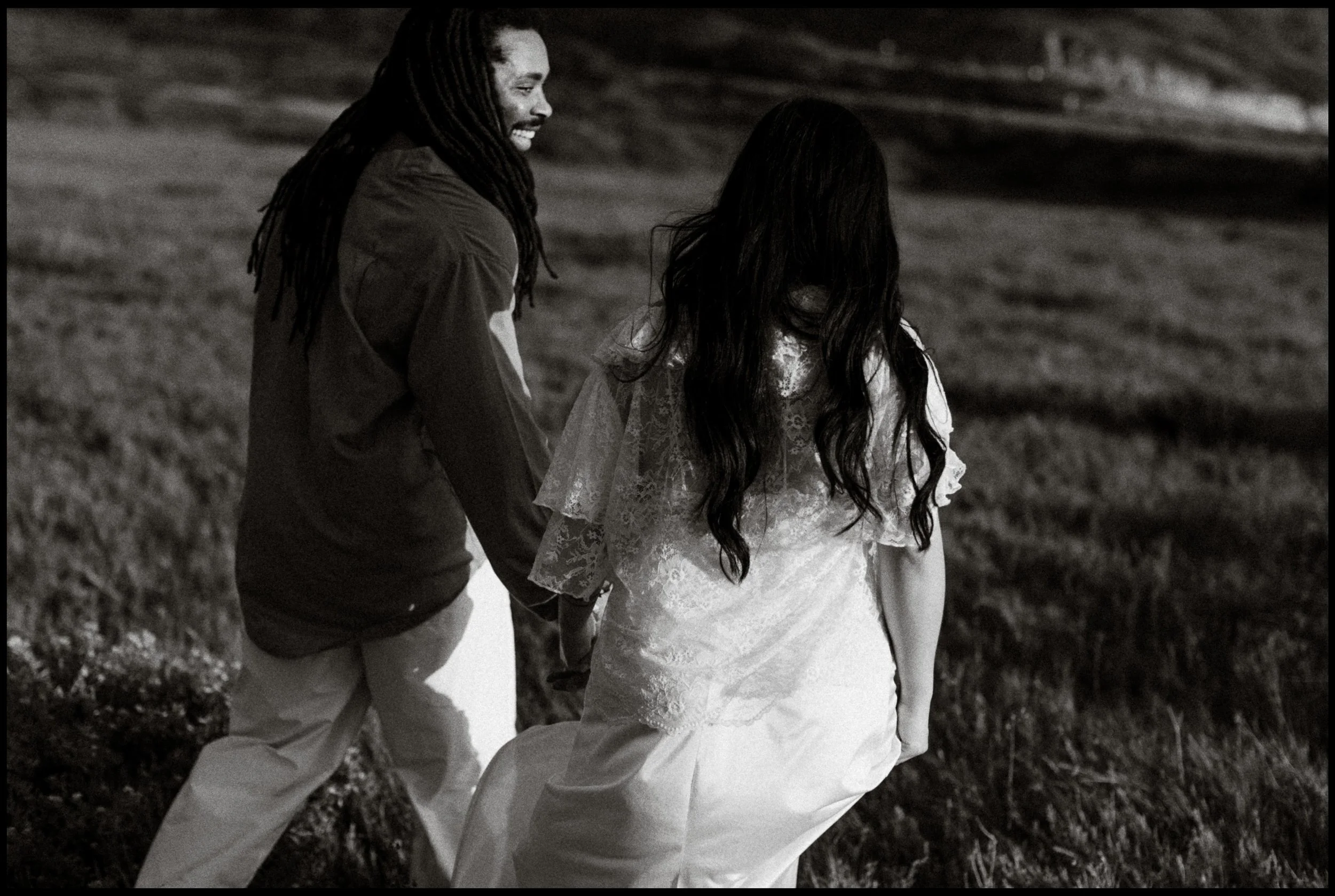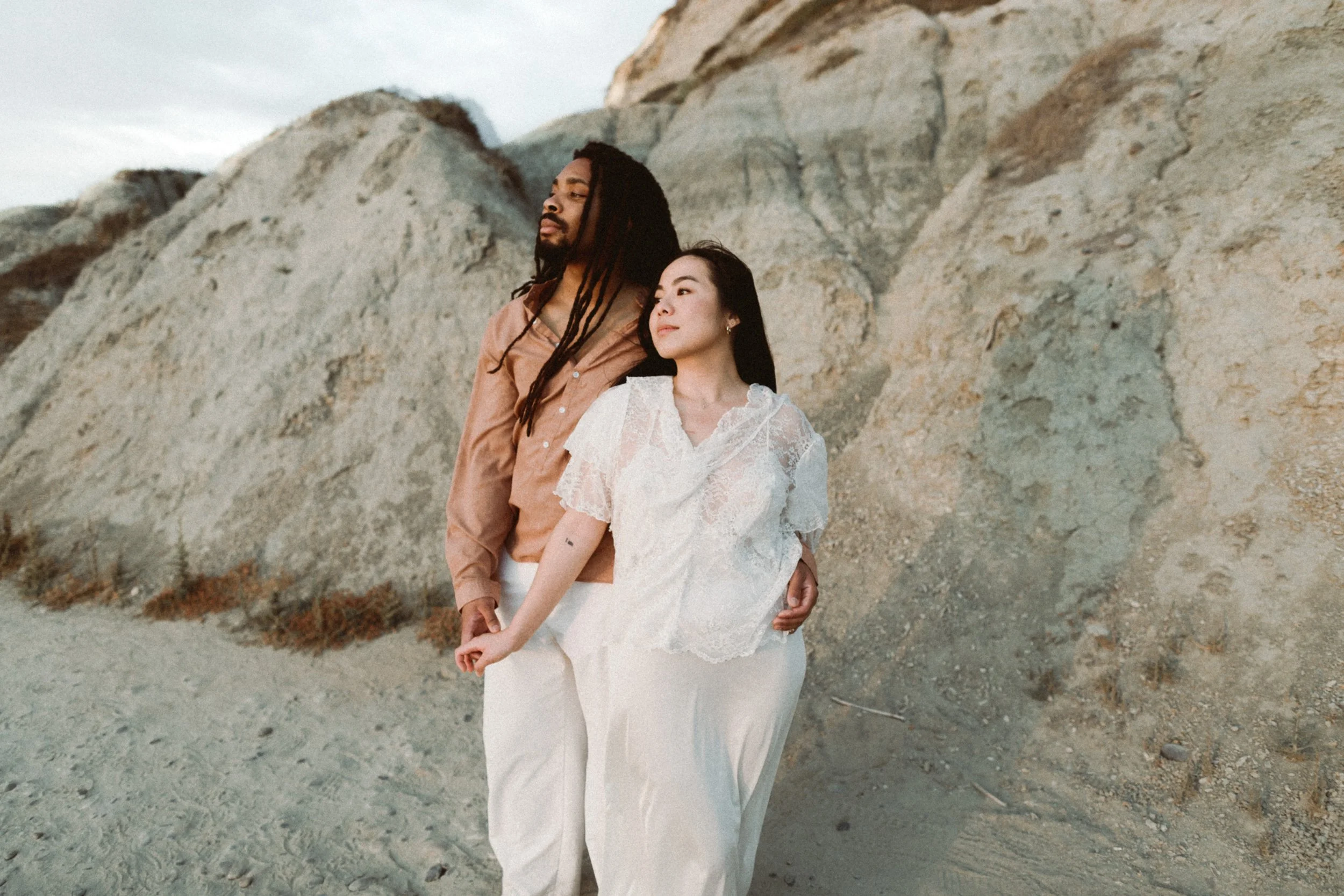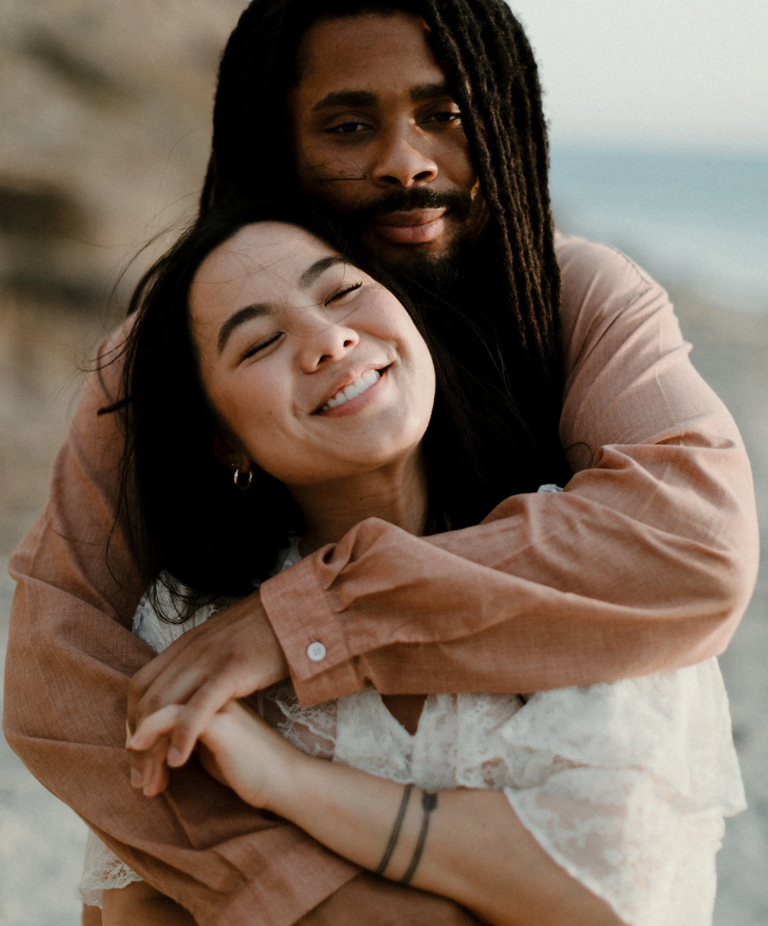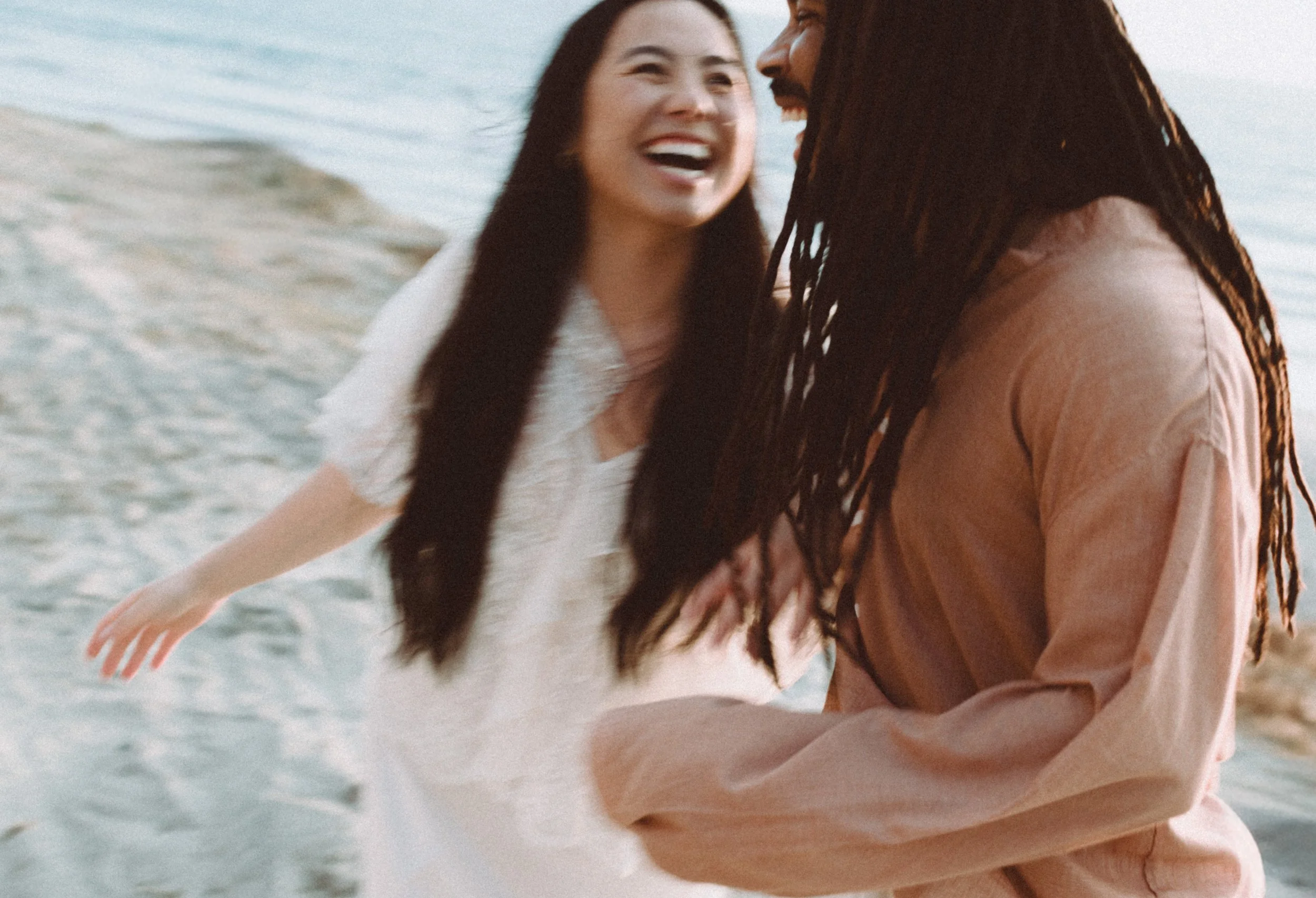 I’ve known Ila since middle school, and meeting Jamal for the first time felt like picking up where life left off. Between shared stories, laughter, and a little therapy in the sand, we created images that blended editorial elegance with raw documentary honesty.
