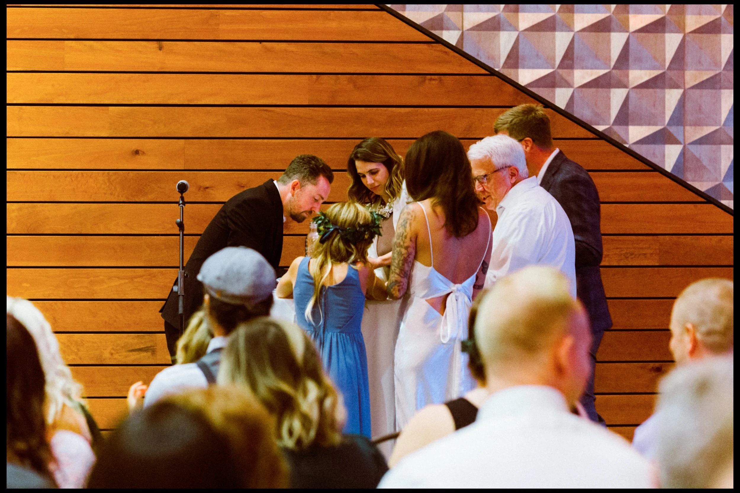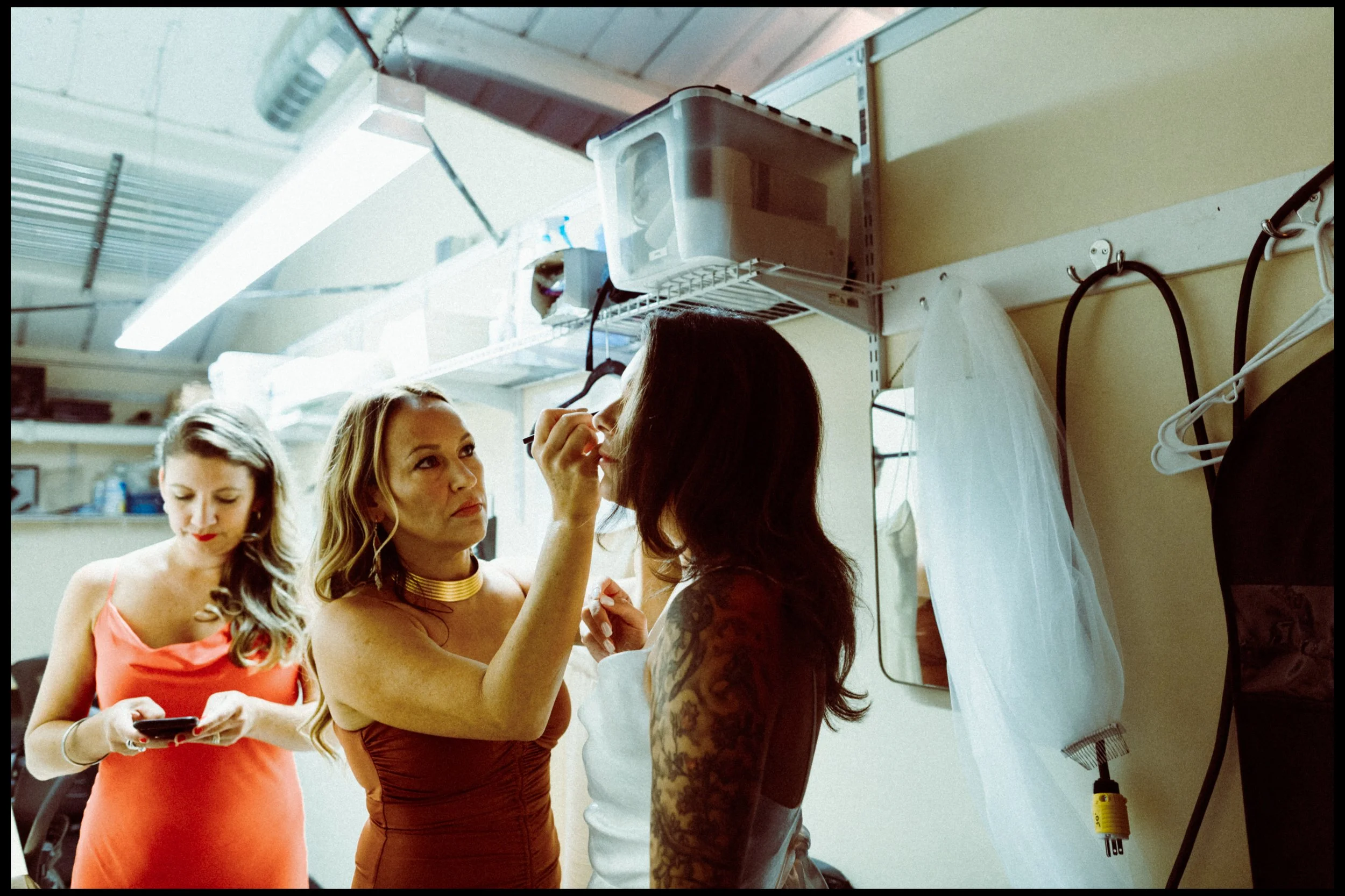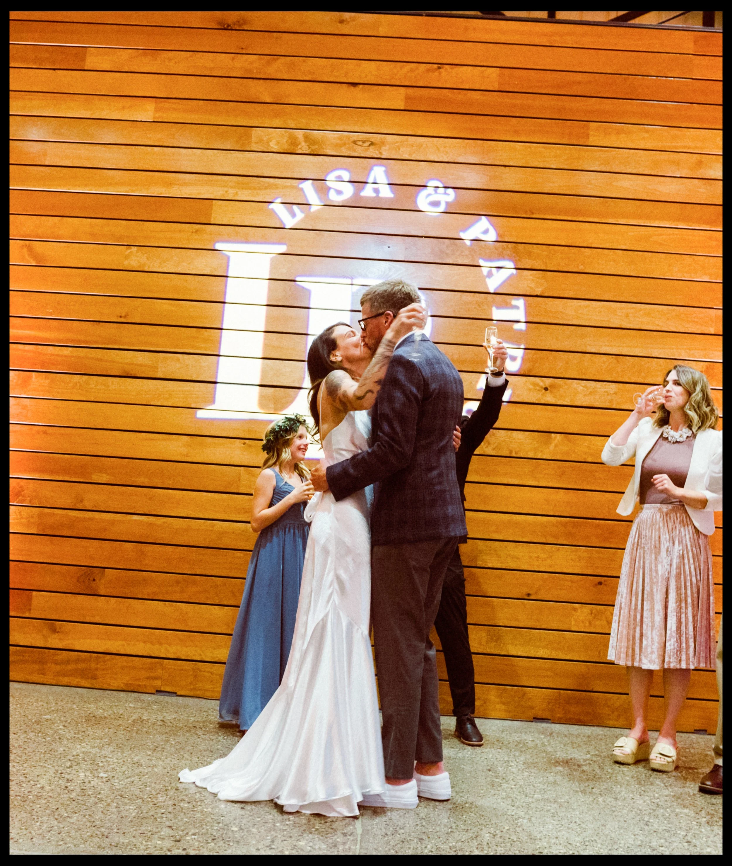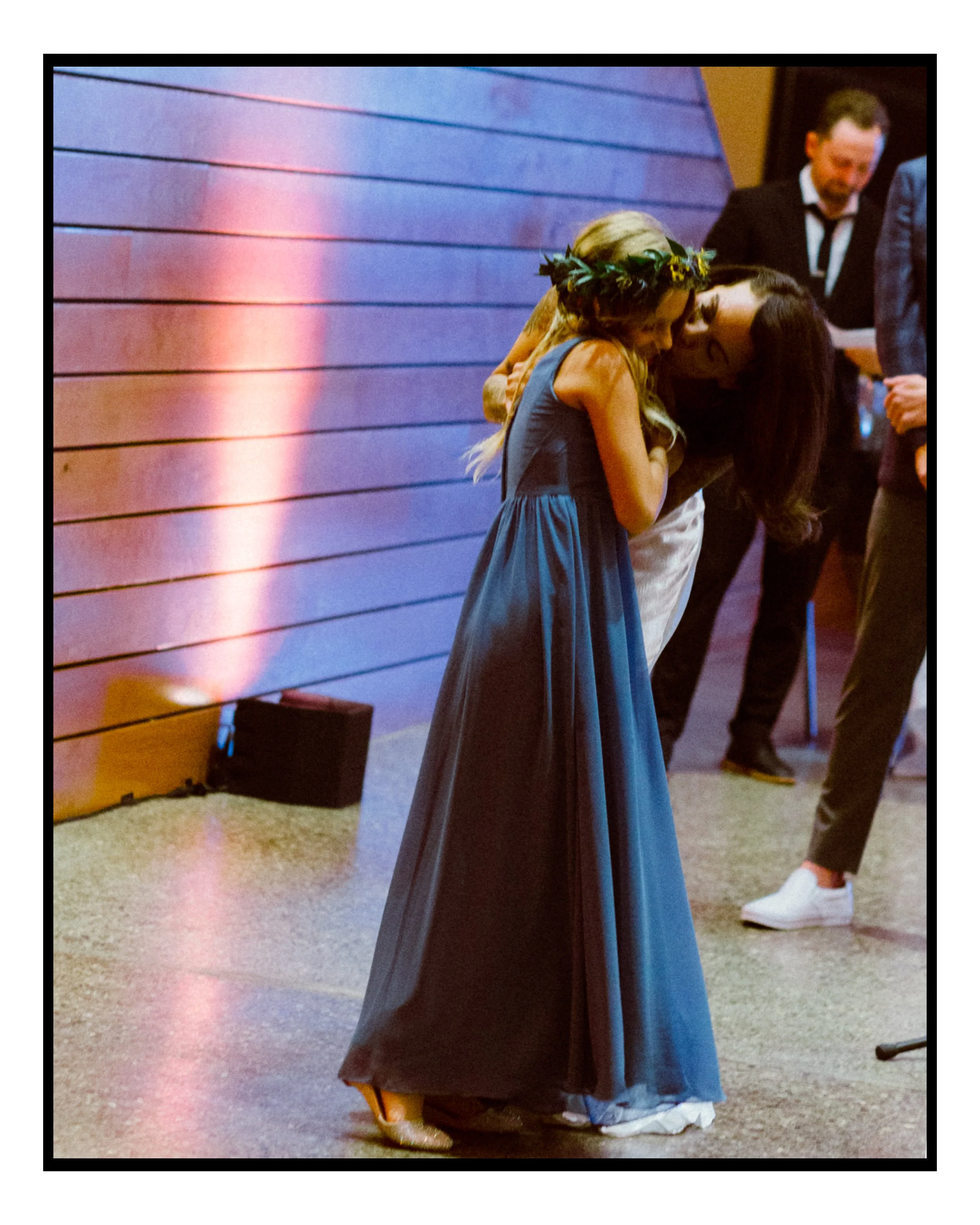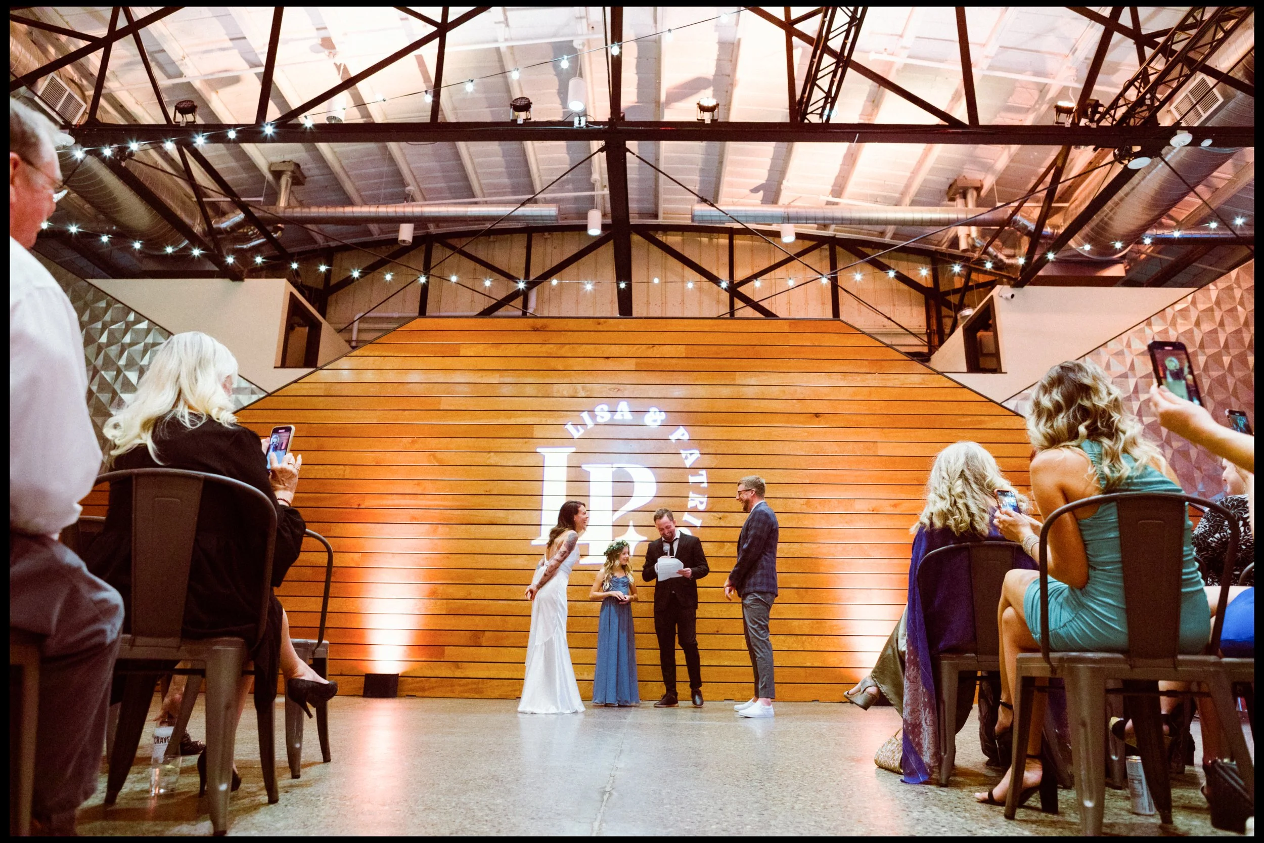 We moved over to Quincy Hall where Lisa’s friends helped her into her dress. Tucked away in the managers office, a quiet space; sharing laughter echoed through the walls as zippers zipped and final touches were made. Just outside the door, Penelope waited with excitement, ready to walk down with her mom. There was no pomp, no fanfare, just a warm, sacred pause before the vows. A moment suspended in time before everything changed.