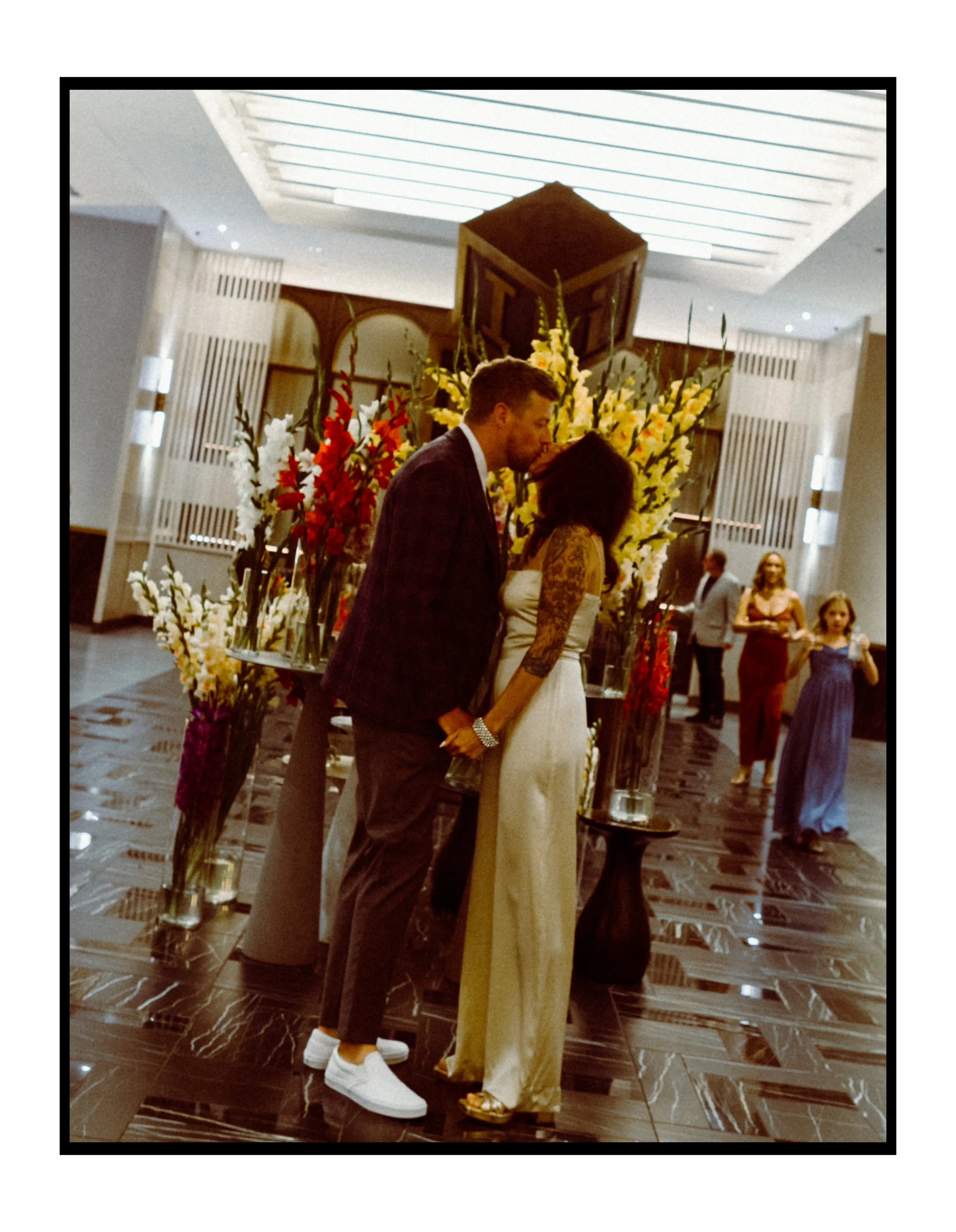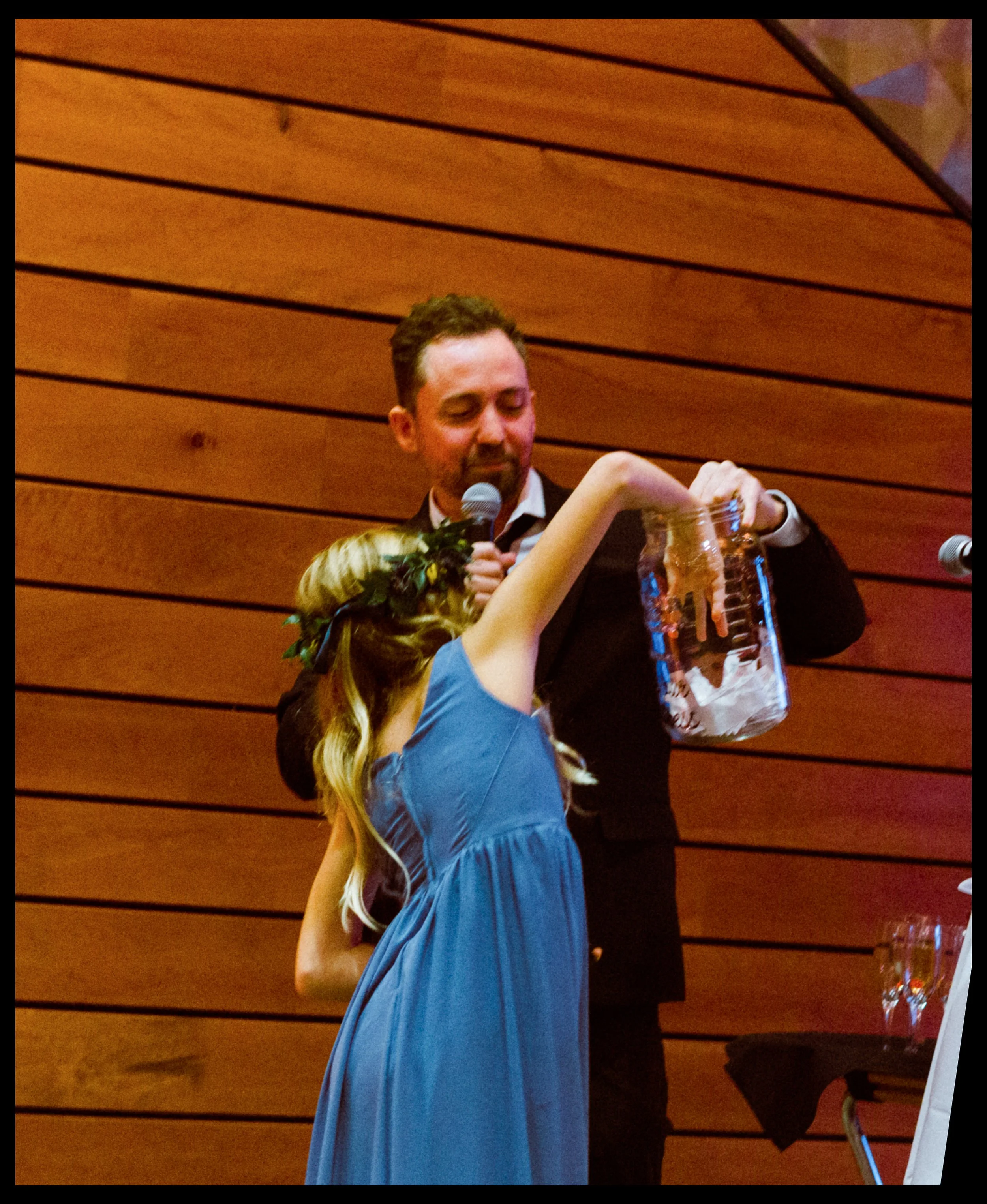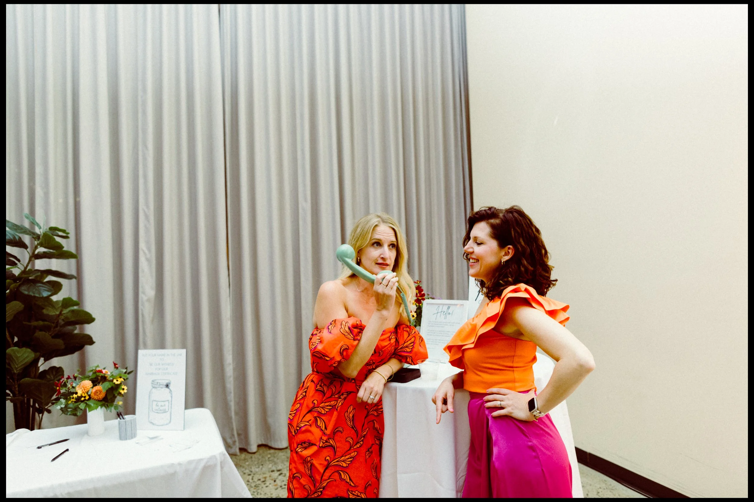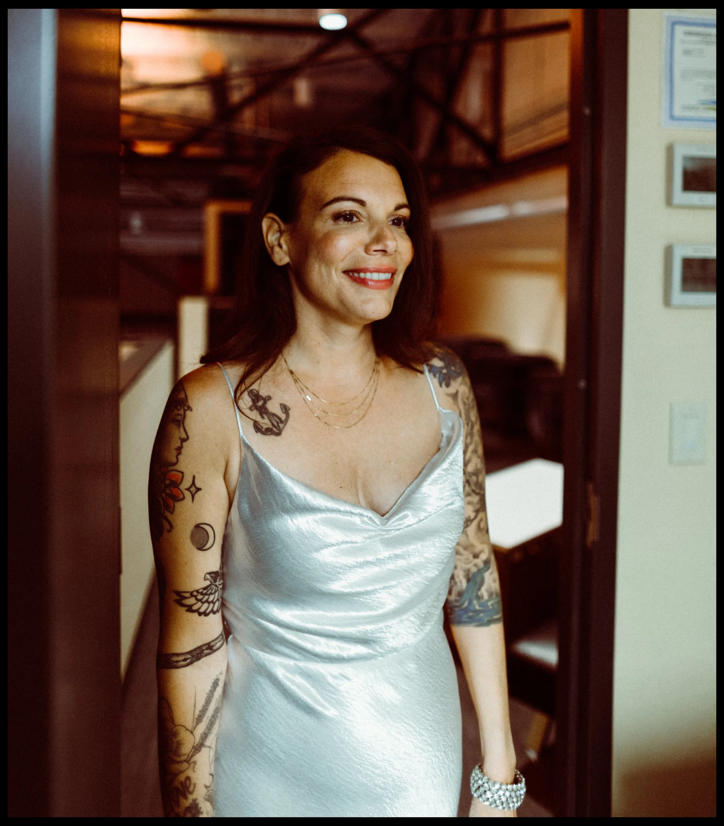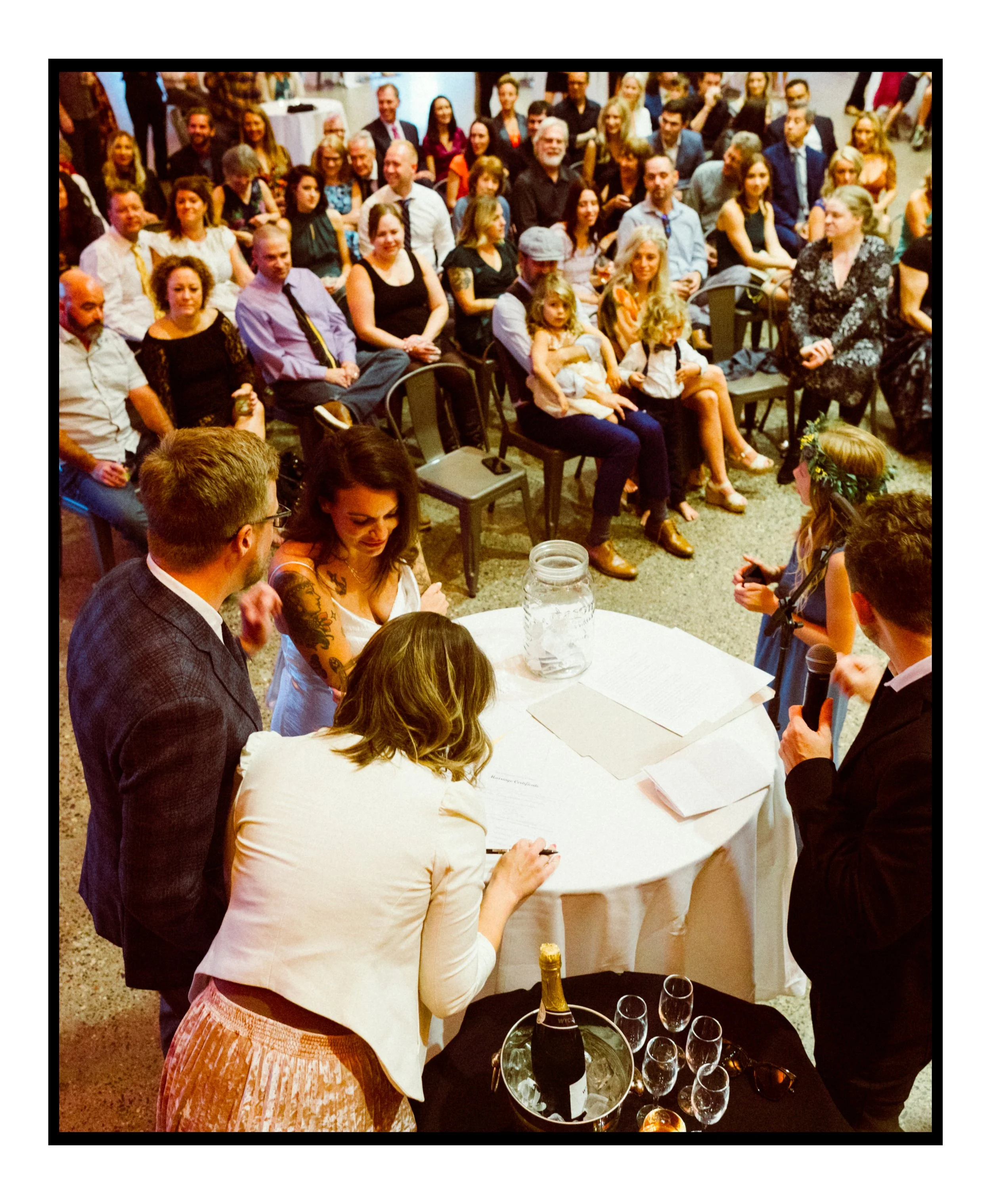 We moved over to Quincy Hall where Lisa’s friends helped her into her dress. Tucked away in the managers office, a quiet space; sharing laughter echoed through the walls as zippers zipped and final touches were made. Just outside the door, Penelope waited with excitement, ready to walk down with her mom. There was no pomp, no fanfare, just a warm, sacred pause before the vows. A moment suspended in time before everything changed.