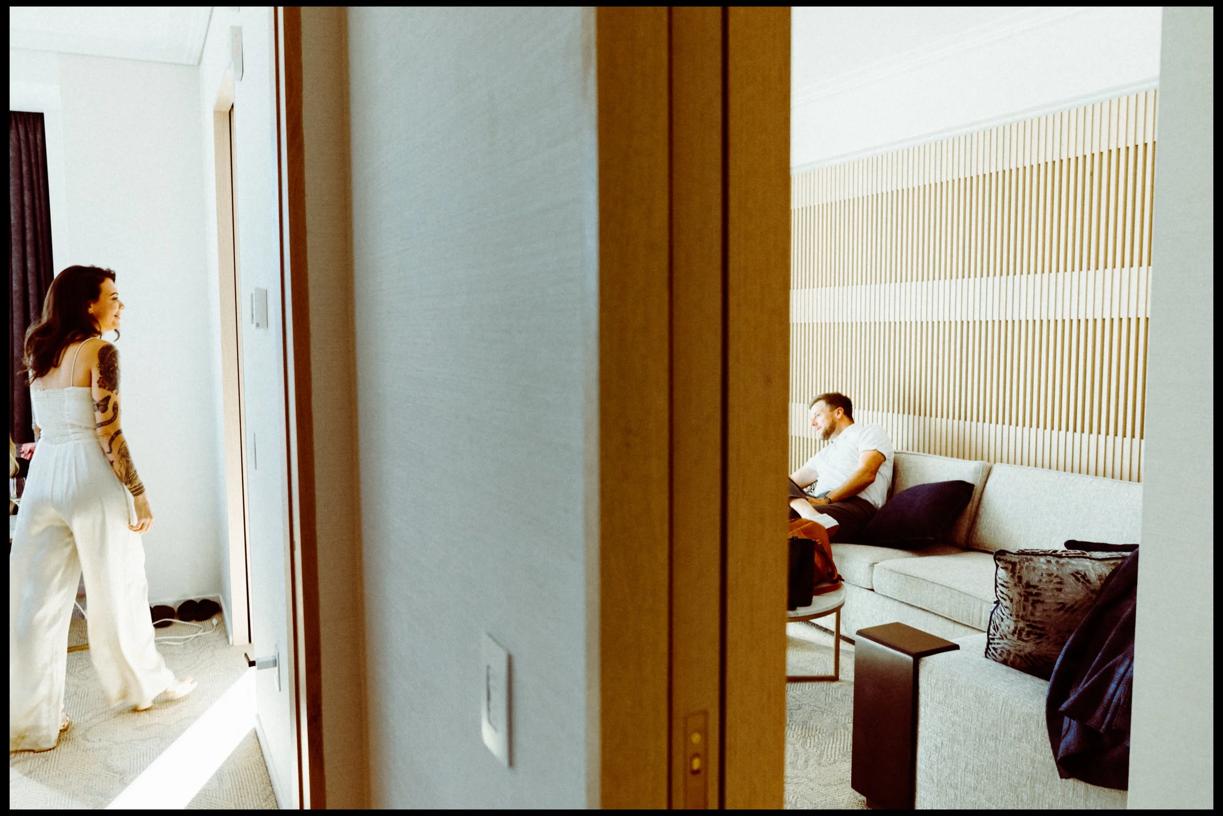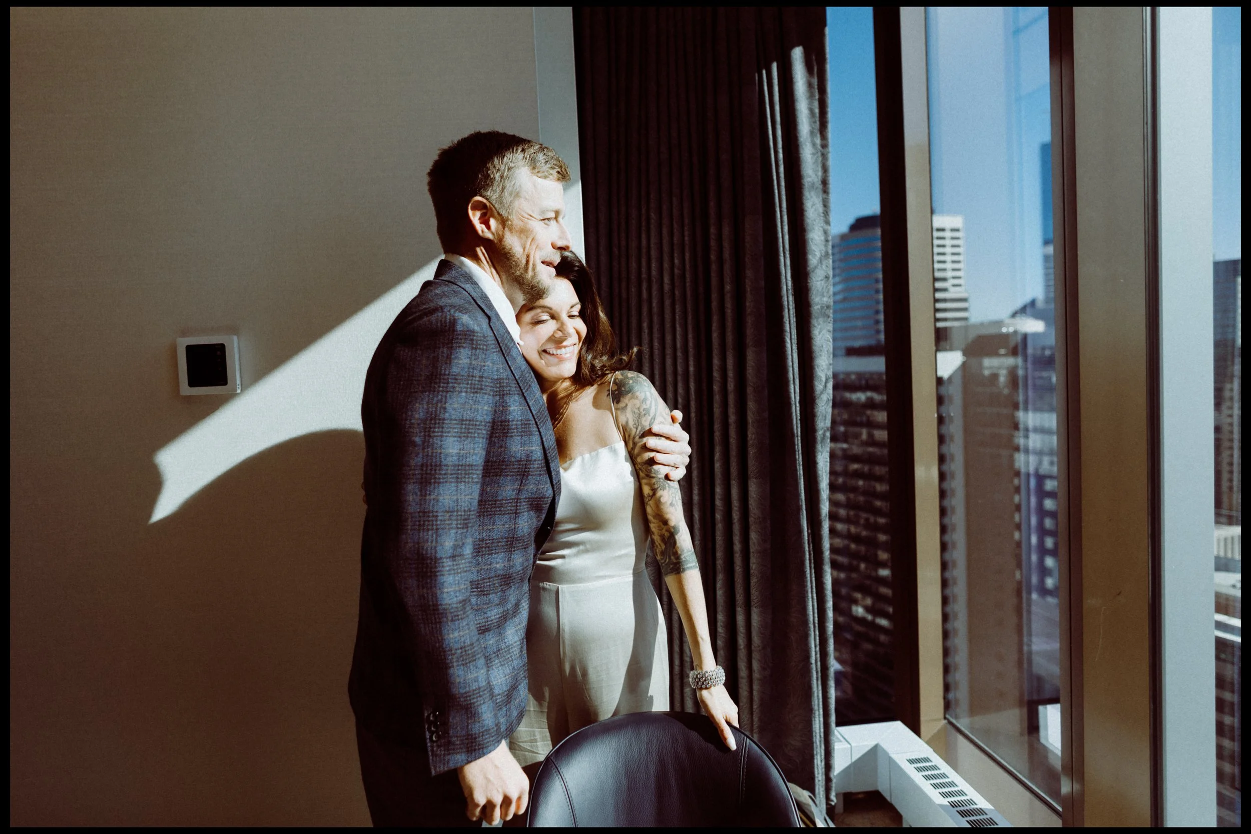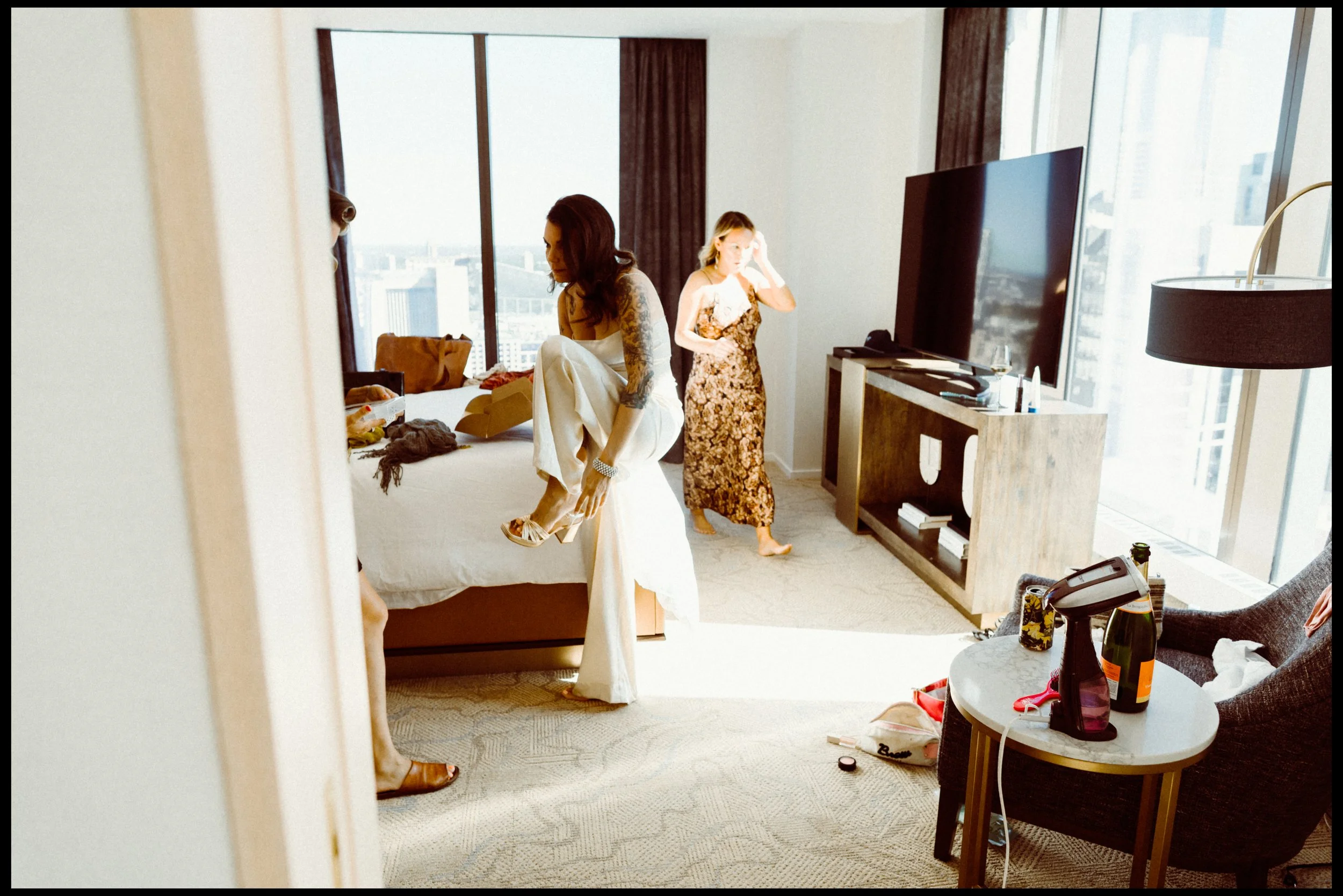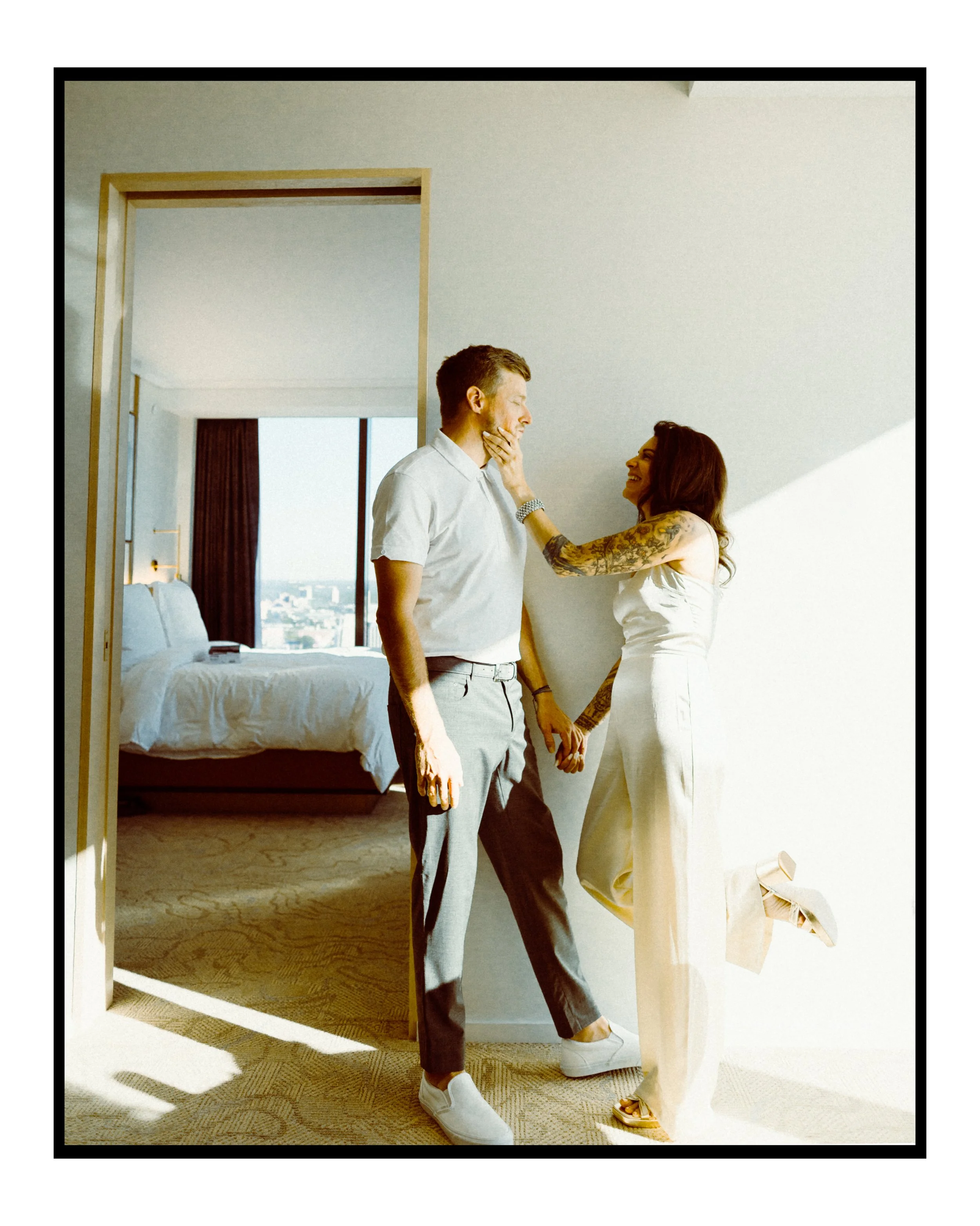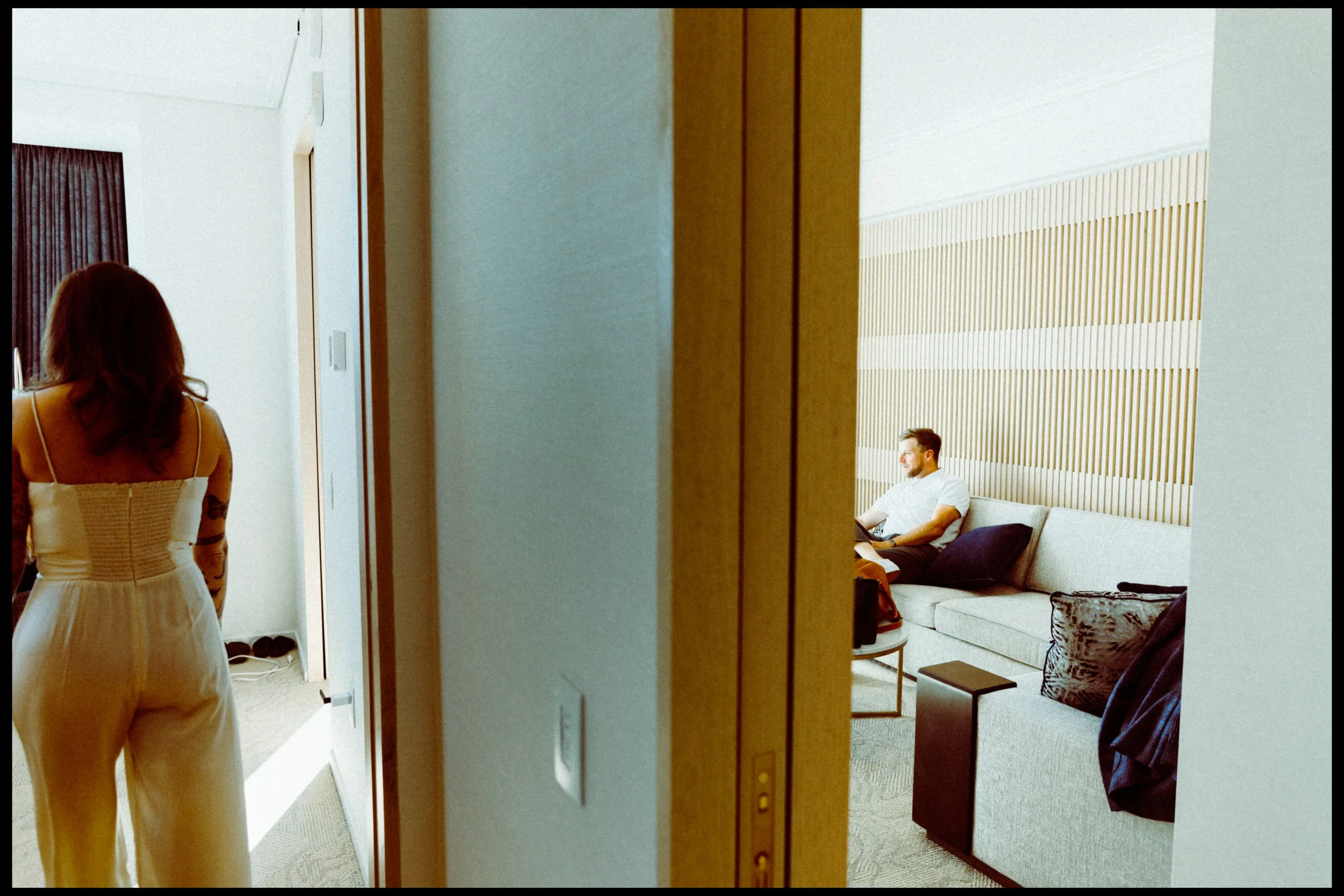 We wanted to keep the documentary approach so we spent just ten minutes getting unposed photos around the hotel room. No plans, no shot list, just enjoying moments before the ceremony.