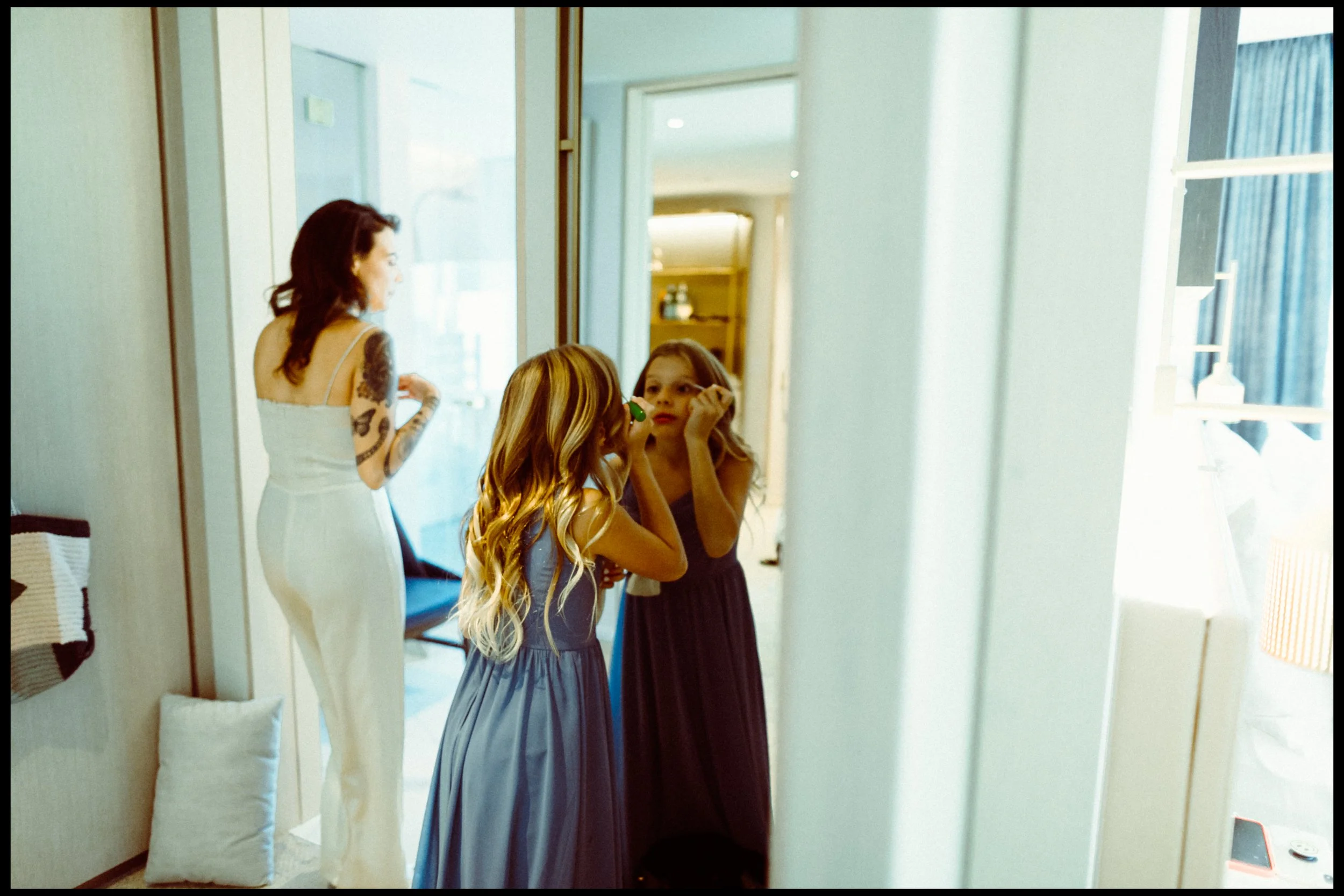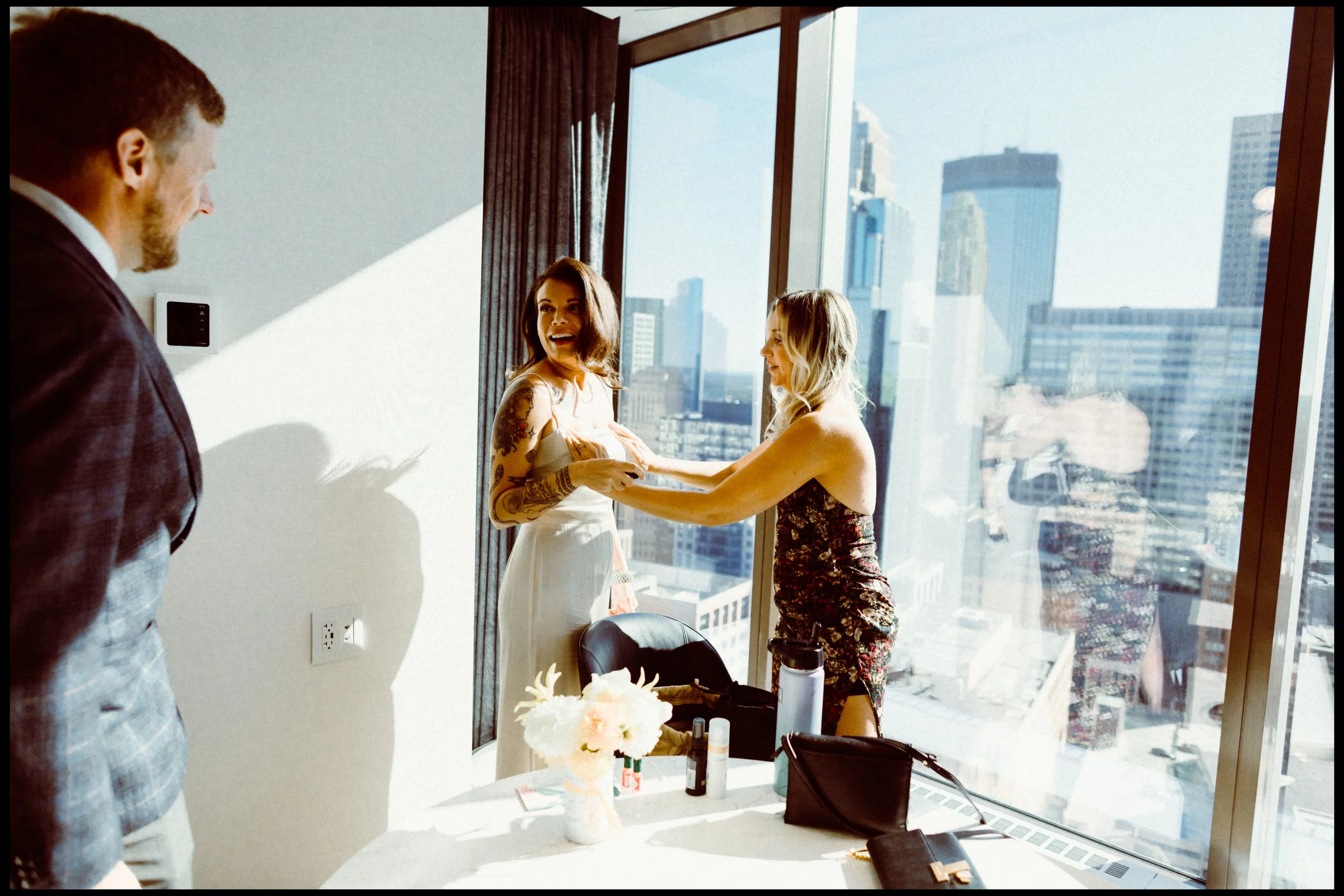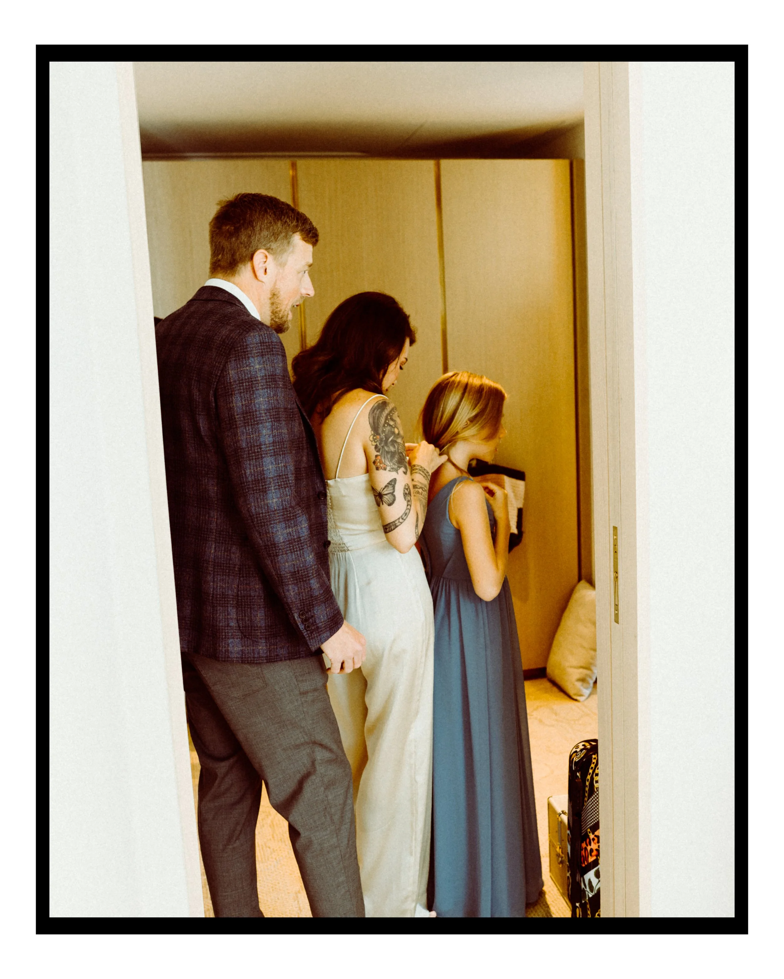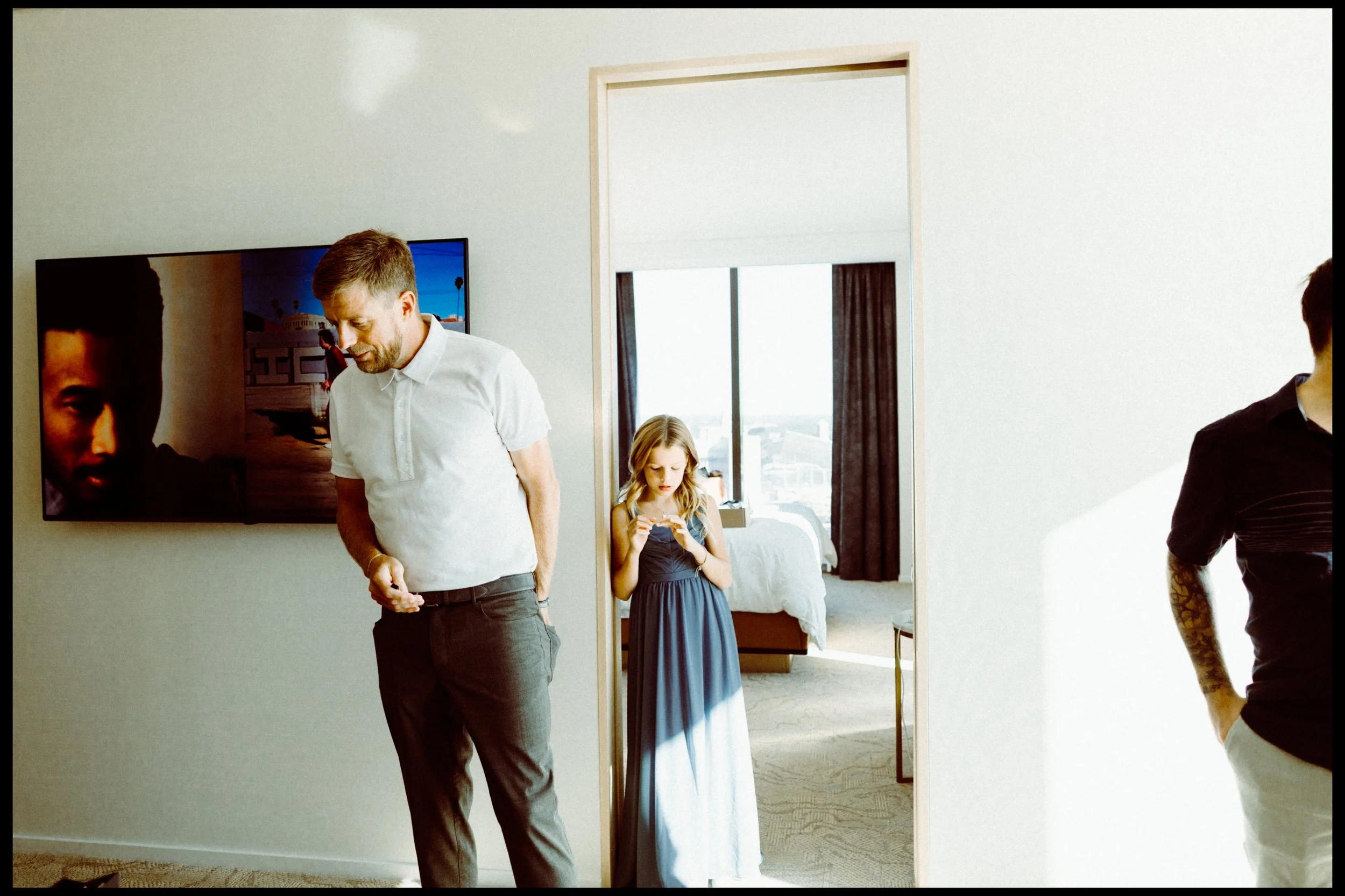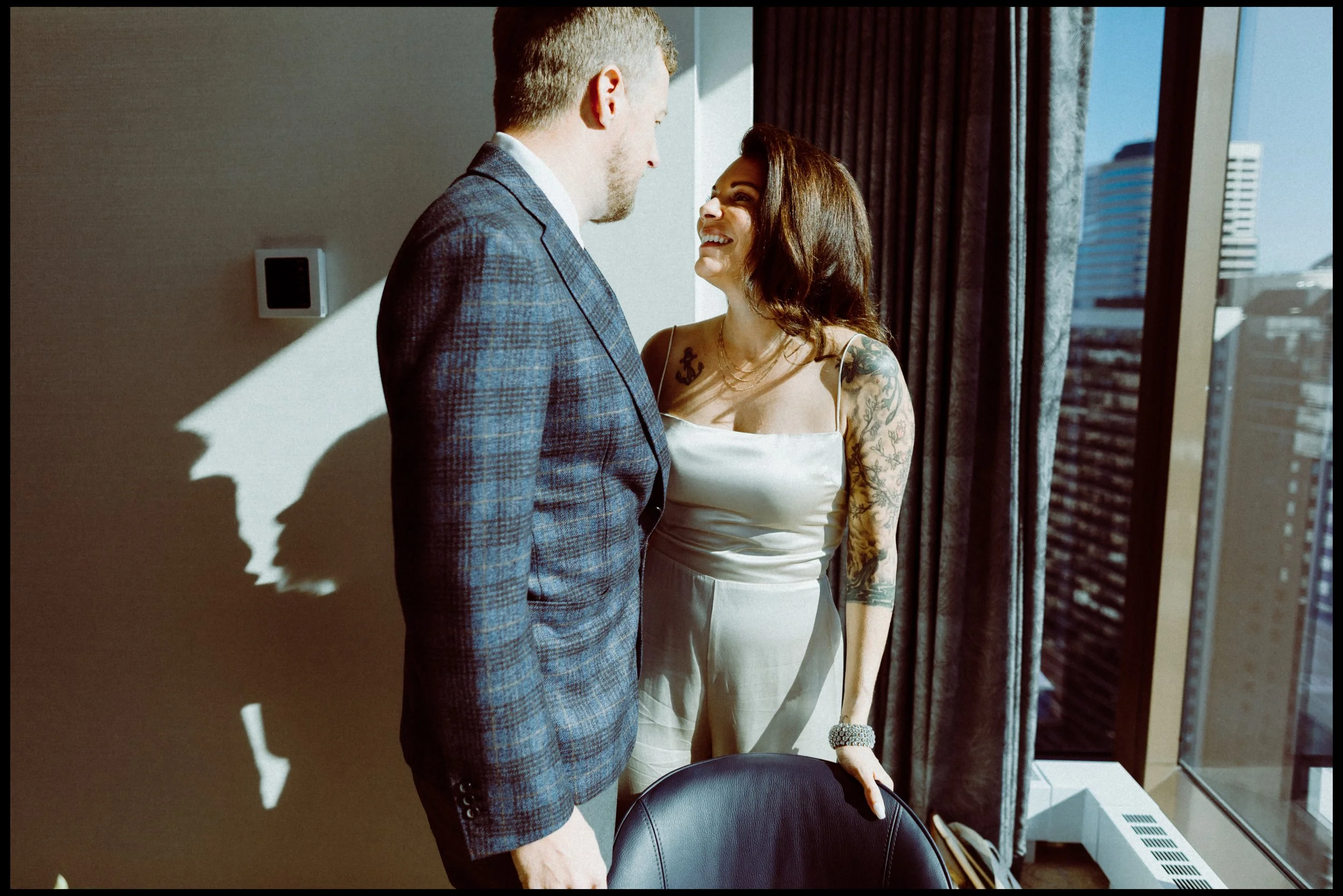 We wanted to keep the documentary approach so we spent just ten minutes getting unposed photos around the hotel room. No plans, no shot list, just enjoying moments before the ceremony.