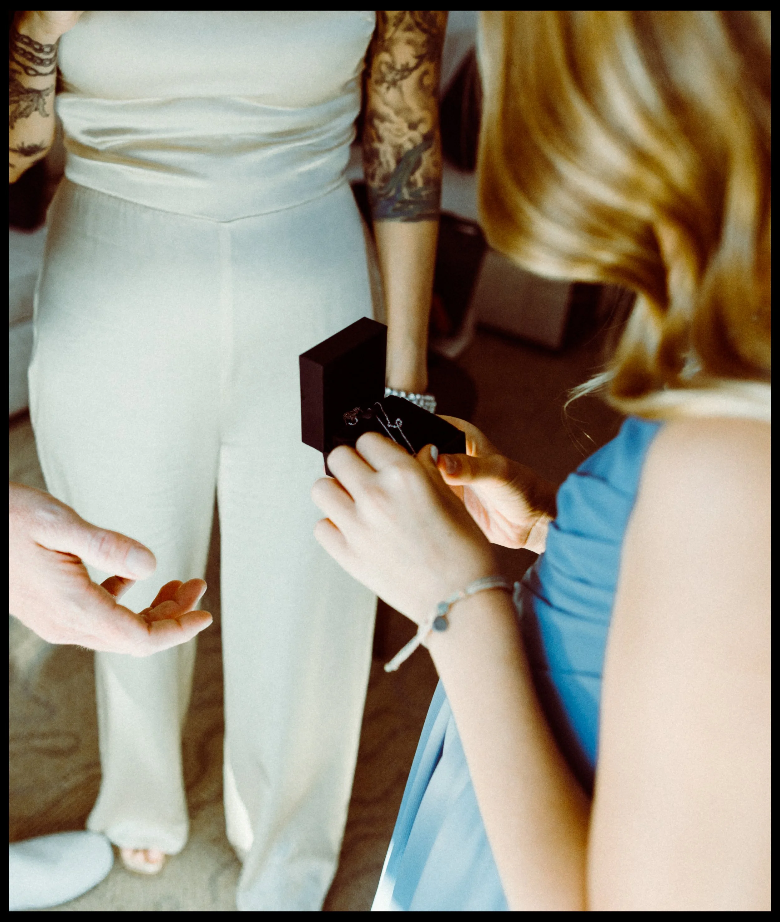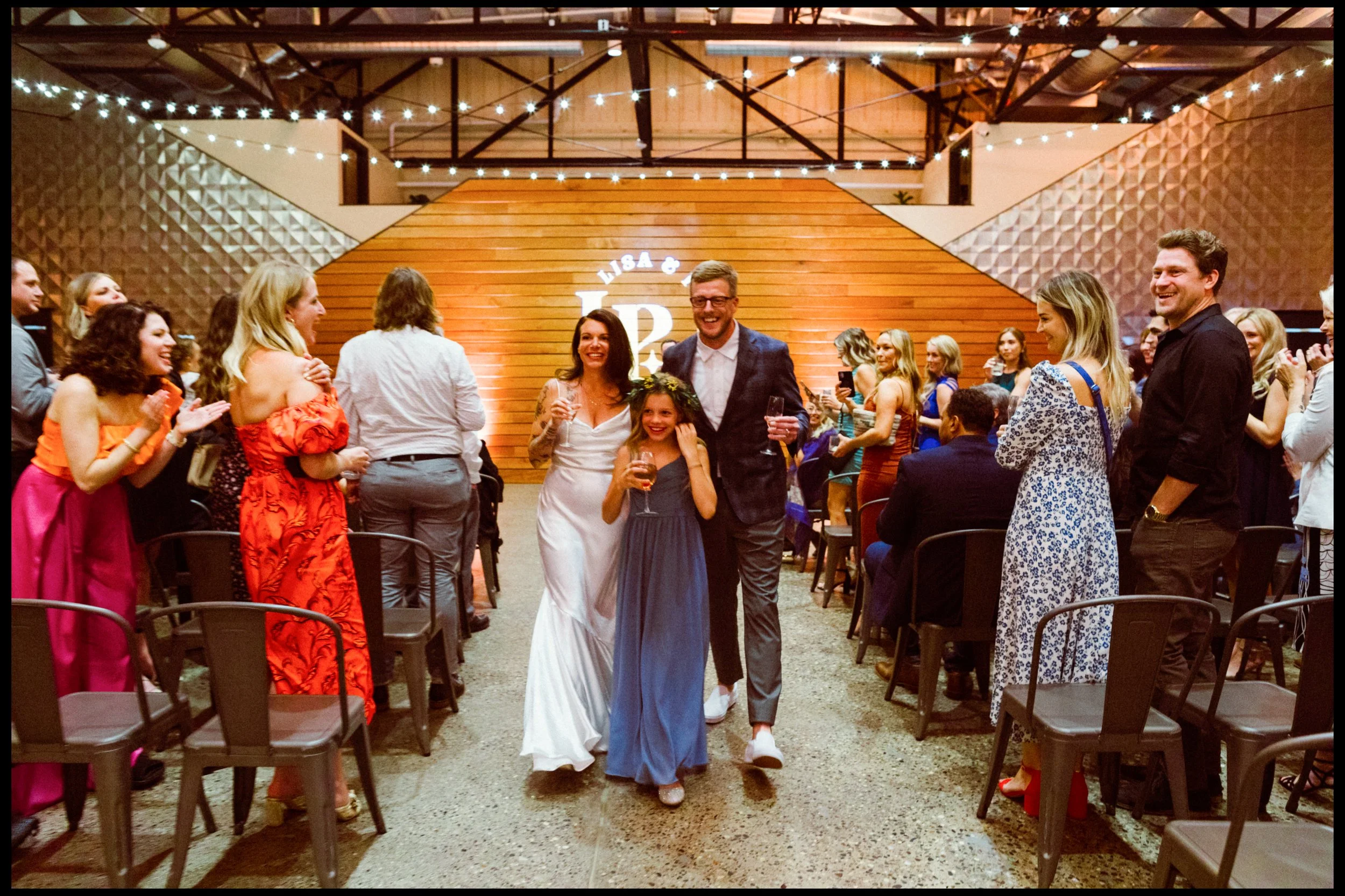 One of the most touching moments of the day came before the vows were even spoken. Their daughter, Penelope, received a special gift from Lisa and Patrick; a reminder that this day wasn’t just about two people getting married, but a family coming together even more deeply. Her joy, her shy smile, her little hands unwrapping that box… it was quiet and profound and full of love.